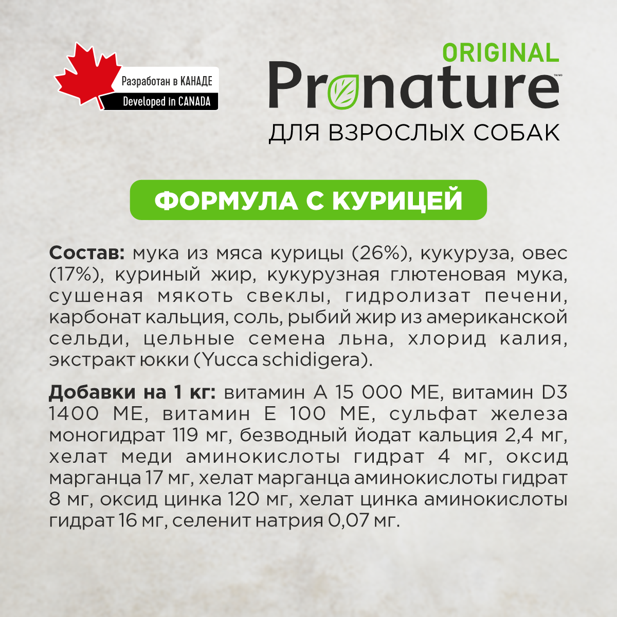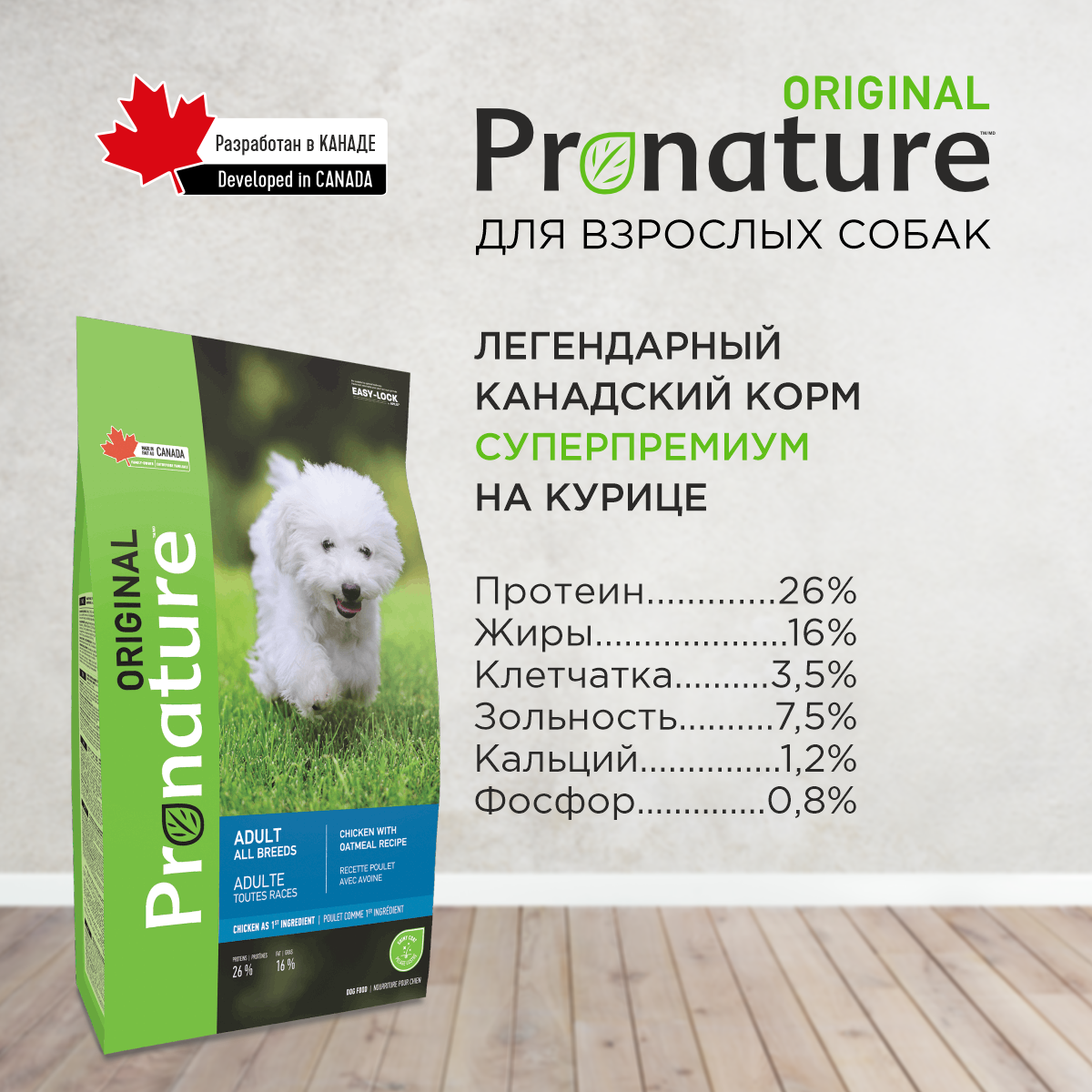 Сухой корм для собак ProNature Original, для здоровья кожи и шерсти, курица, с овсянкой 1 уп. х 1 шт. х 11.3 кг (для средних и крупных пород)