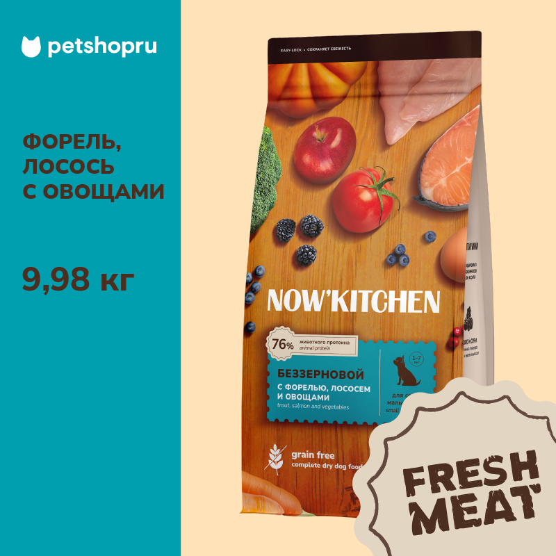 СохранитьNow Fresh беззерновой корм для взрослых собак малых пород со свежей форелью, лососем, Small Adult Grain-free Recipe, Trout, Salmon, 9,98кг интересное: