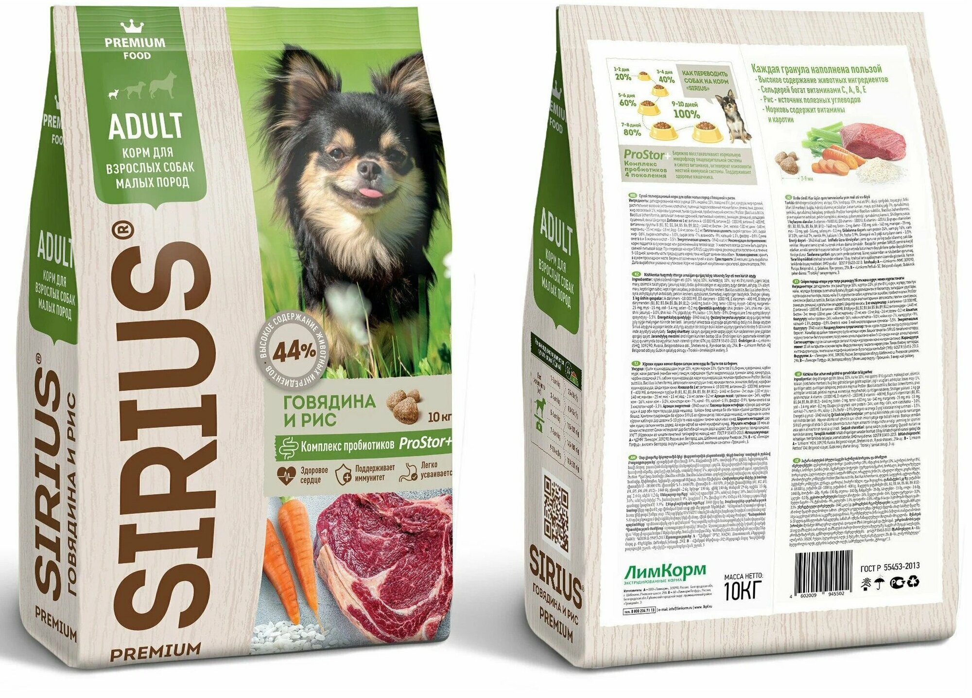 Купить Sirius Корм сухой для взрослых собак малых пород с говядиной, 2 кг