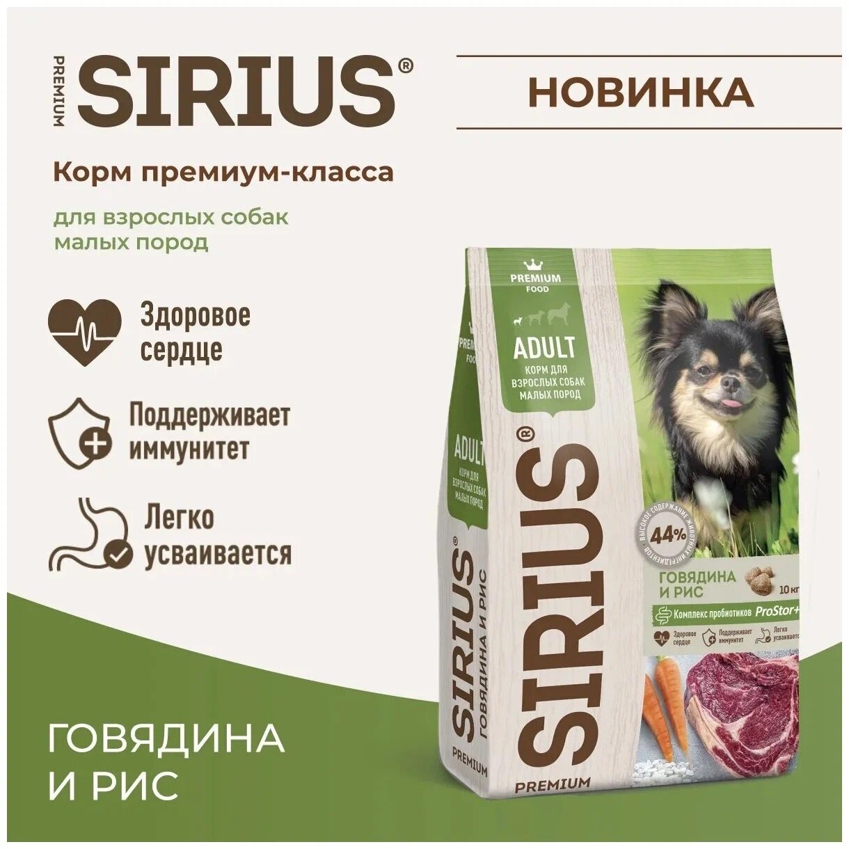 Sirius Премиальный сухой корм для взрослых собак малых пород с говядиной и рисом, 2 кг