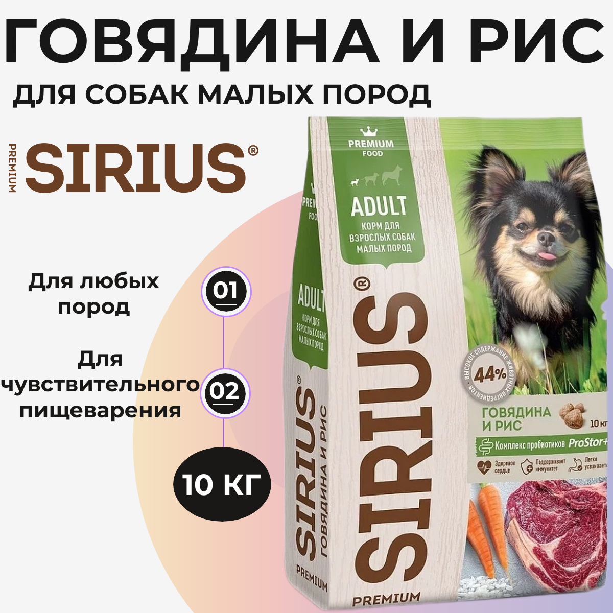 Сухой корм Sirius для собак малых пород Говядина и рис 10кг