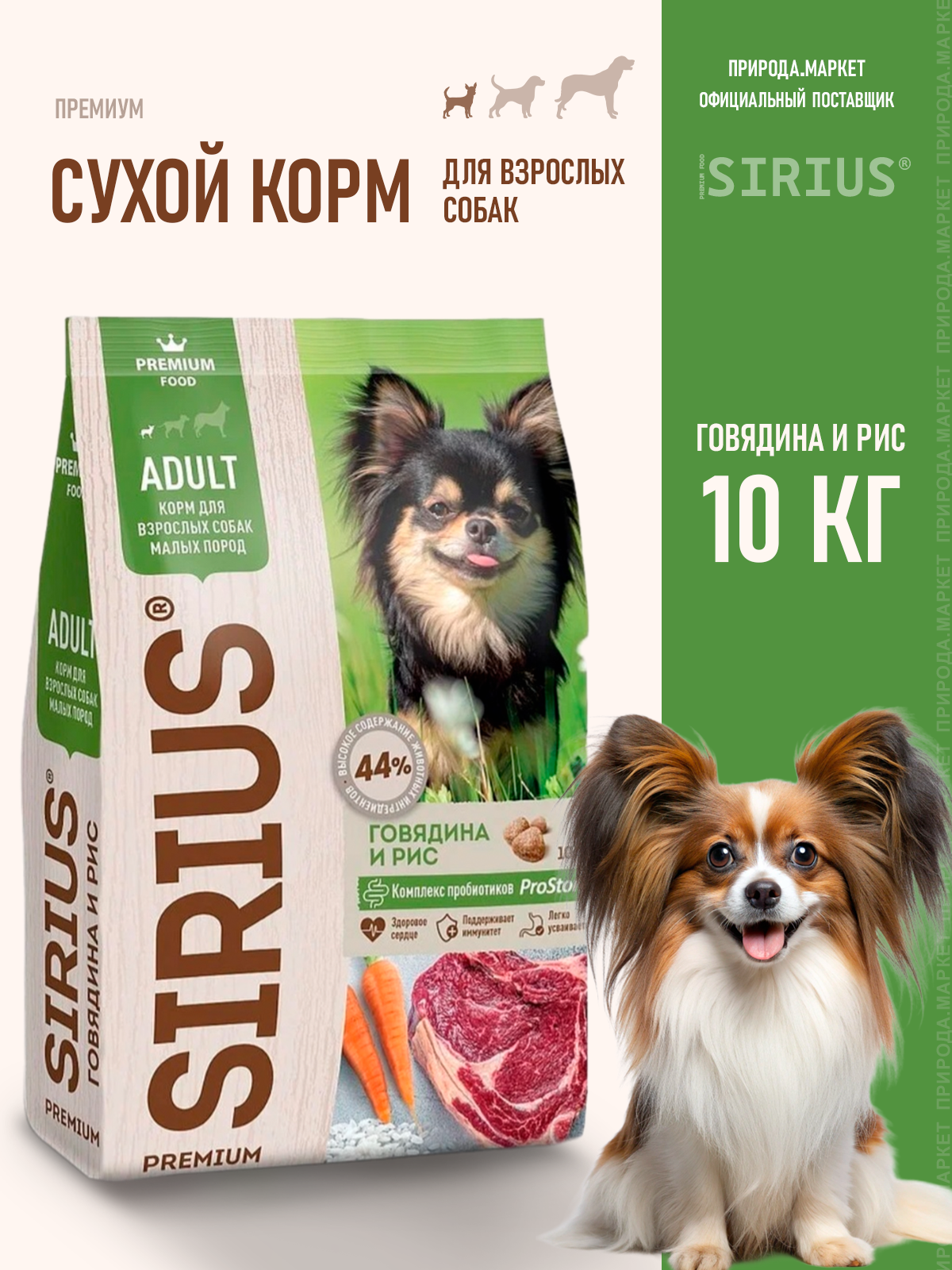 Сухой корм для взрослых собак Sirius говядина с рисом 10кг (для мелких пород)
