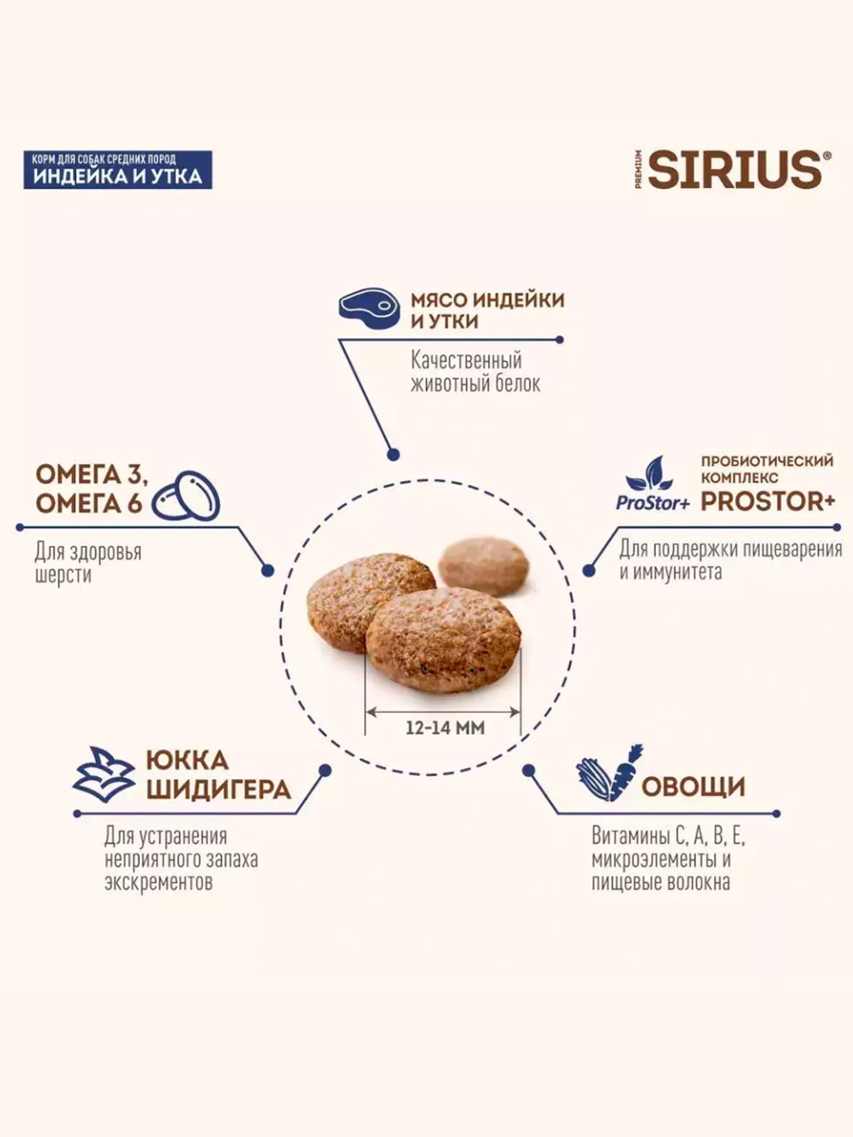 Сухой корм Sirius (Сириус) для средних пород собак, индейка и утка, 12 кг