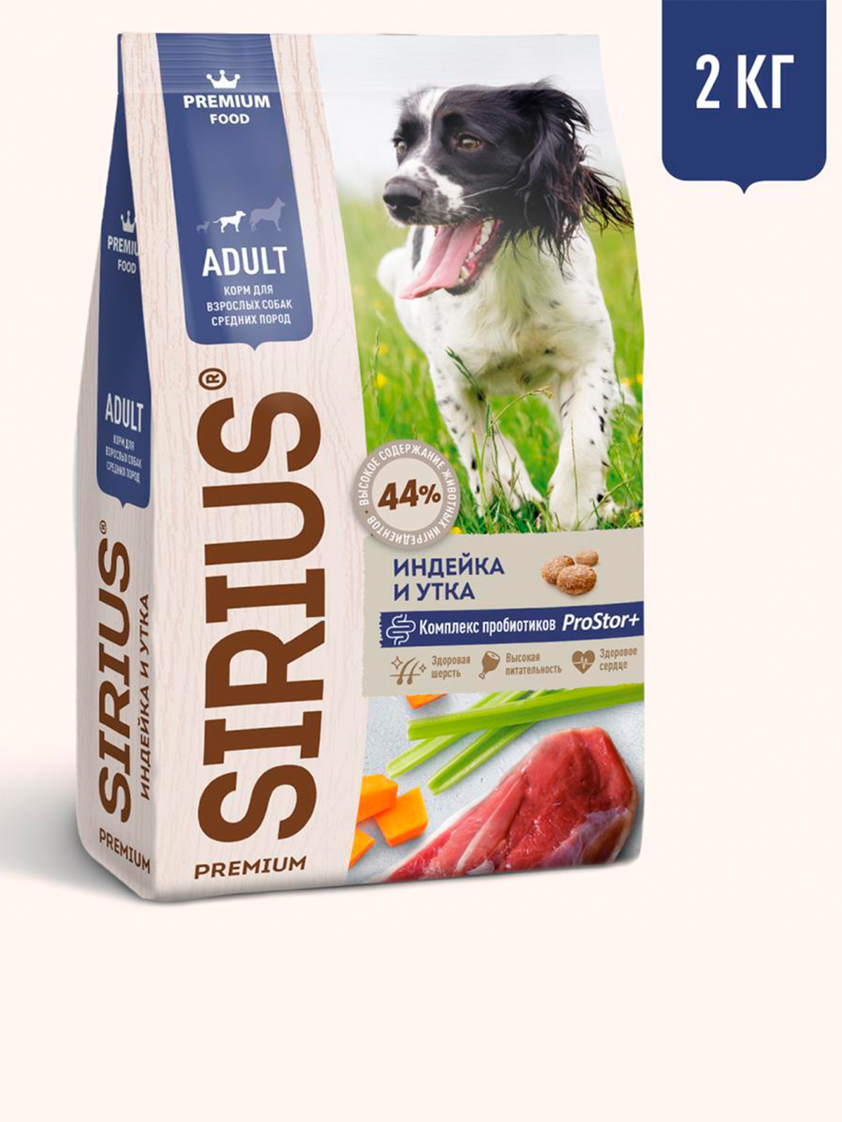 Купить Сухой корм сириус SIRIUS PREMIUM для взрослых собак средних пород, индейка и утка с овощами, 2 кг