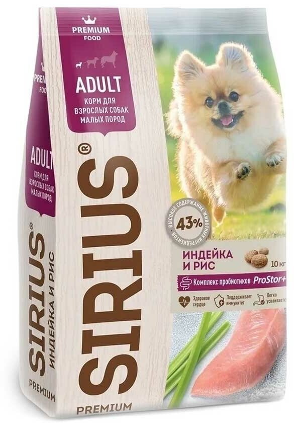 SIRIUS для взрослых собак маленьких пород с индейкой (10 + 10 кг)