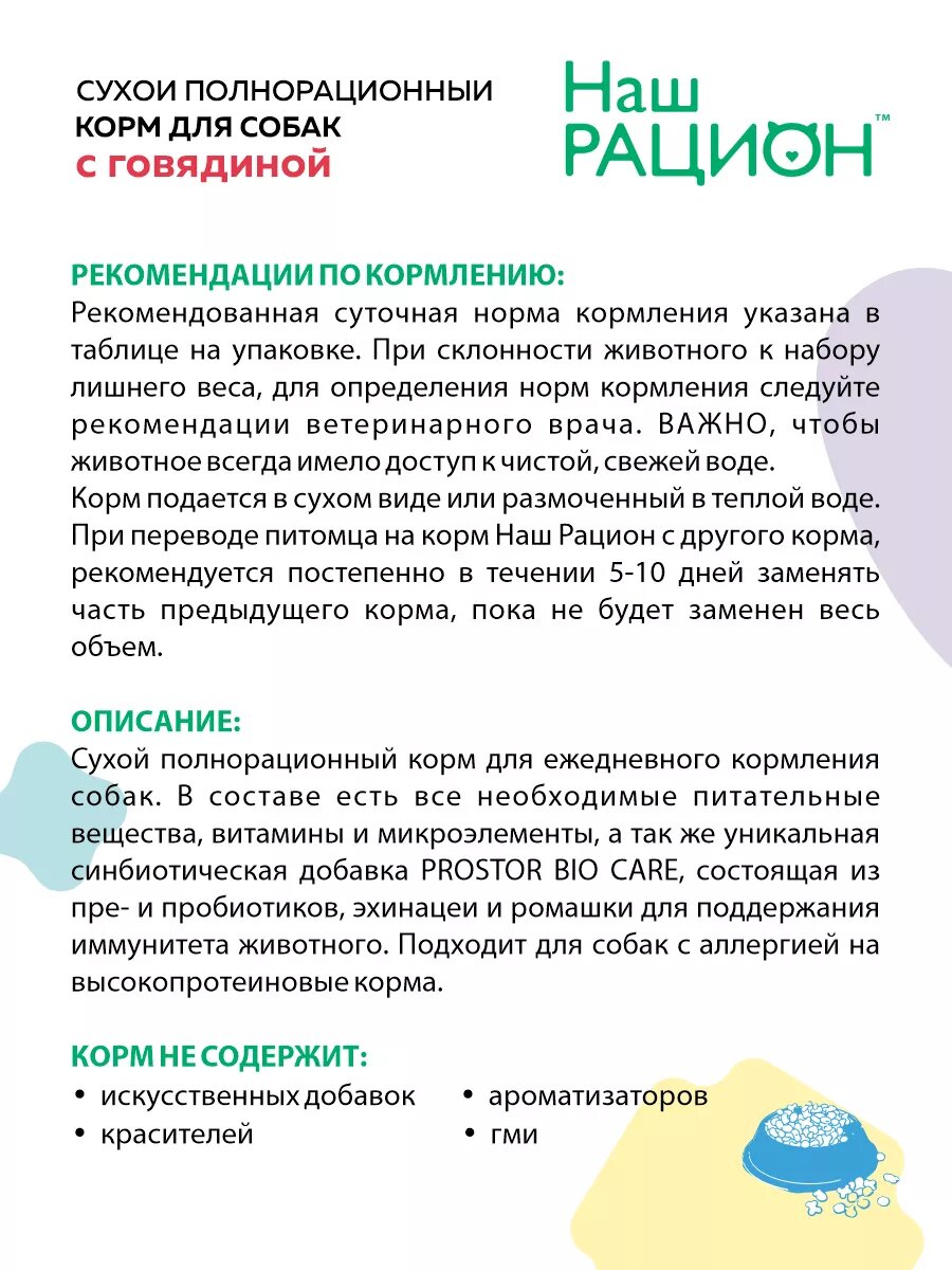 Ниже Вы можете прочитать отзывы на Сухой полнорационный корм Наш Рацион для взрослых собак, с говядиной, 2 кг, ознакомится с подробными характеристиками, посмотреть интересные обзоры и фотографии на Сухой полнорационный корм Наш Рацион для взрослых собак, с говядиной, 2 кг.