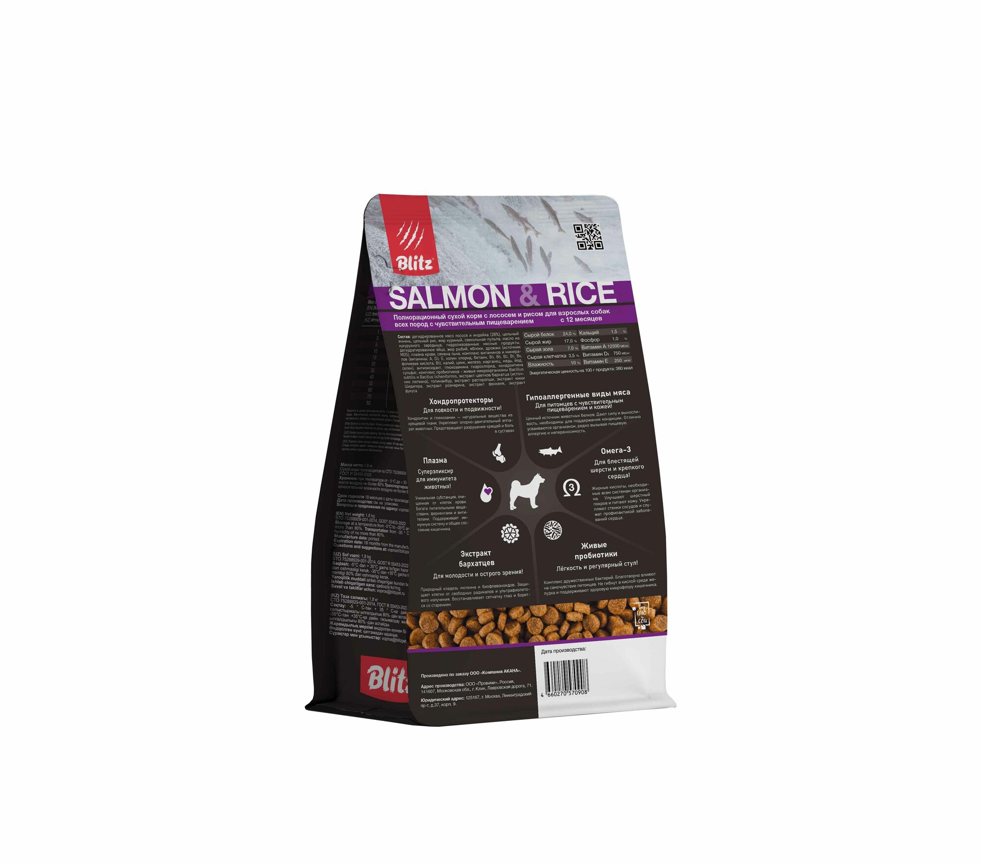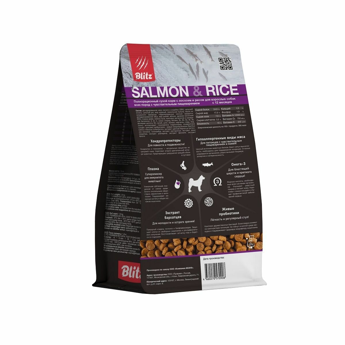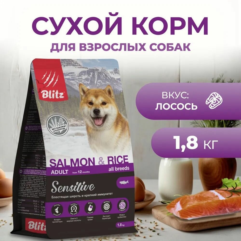 Купить Сухой корм для собак Blitz Sensitive Salmon & Rice лосось с рисом, 1,8 кг
