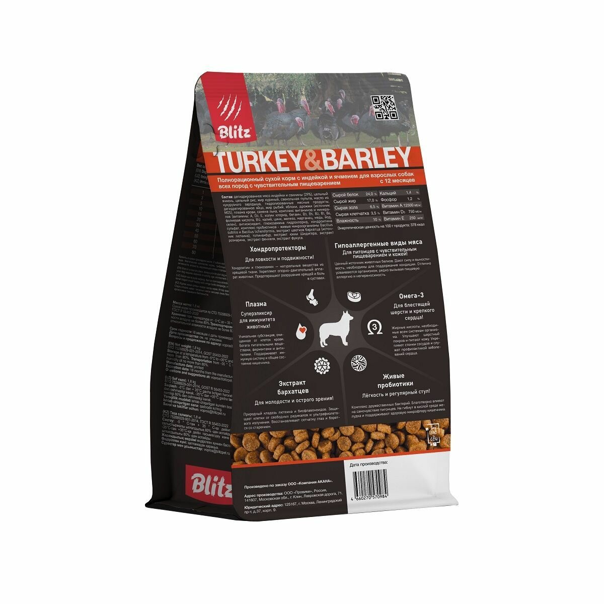 Купить Сухой корм для собак Blitz adult Turkey & Barley индейка с ячменем 1,8 кг