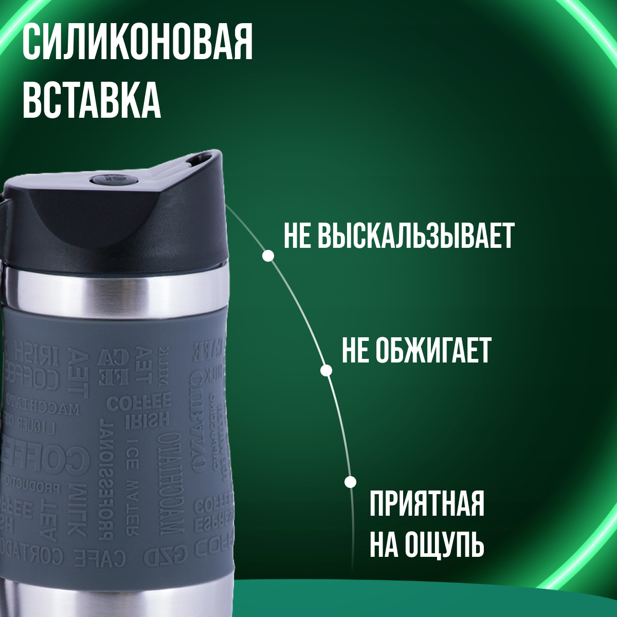 Термокружка Kamille с TPR-вставкой и ремешком (зеленая) 380 мл