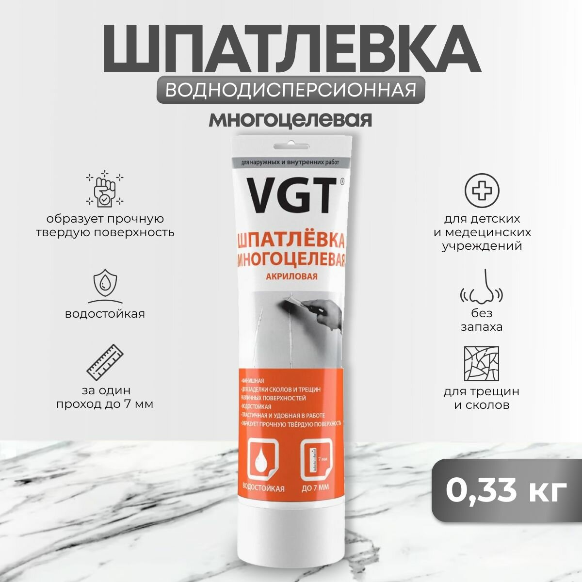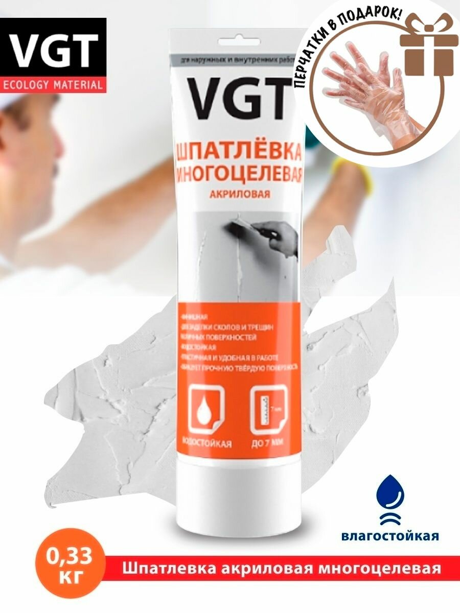 Купить Шпатлевка Вододисперсионная Многоцелевая VGT 0.33кг Акриловая для Наружных и Внутренних Работ / ВГТ.
