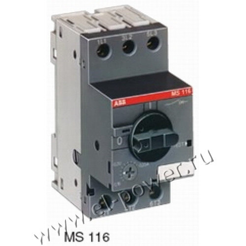 Автоматич.выключ. MS116-6.3 50 кА с регулир. тепловой защитой 4A-6,3А Класс тепл. расцепит. 10, ABB 1SAM250000R1009 (1 шт.)