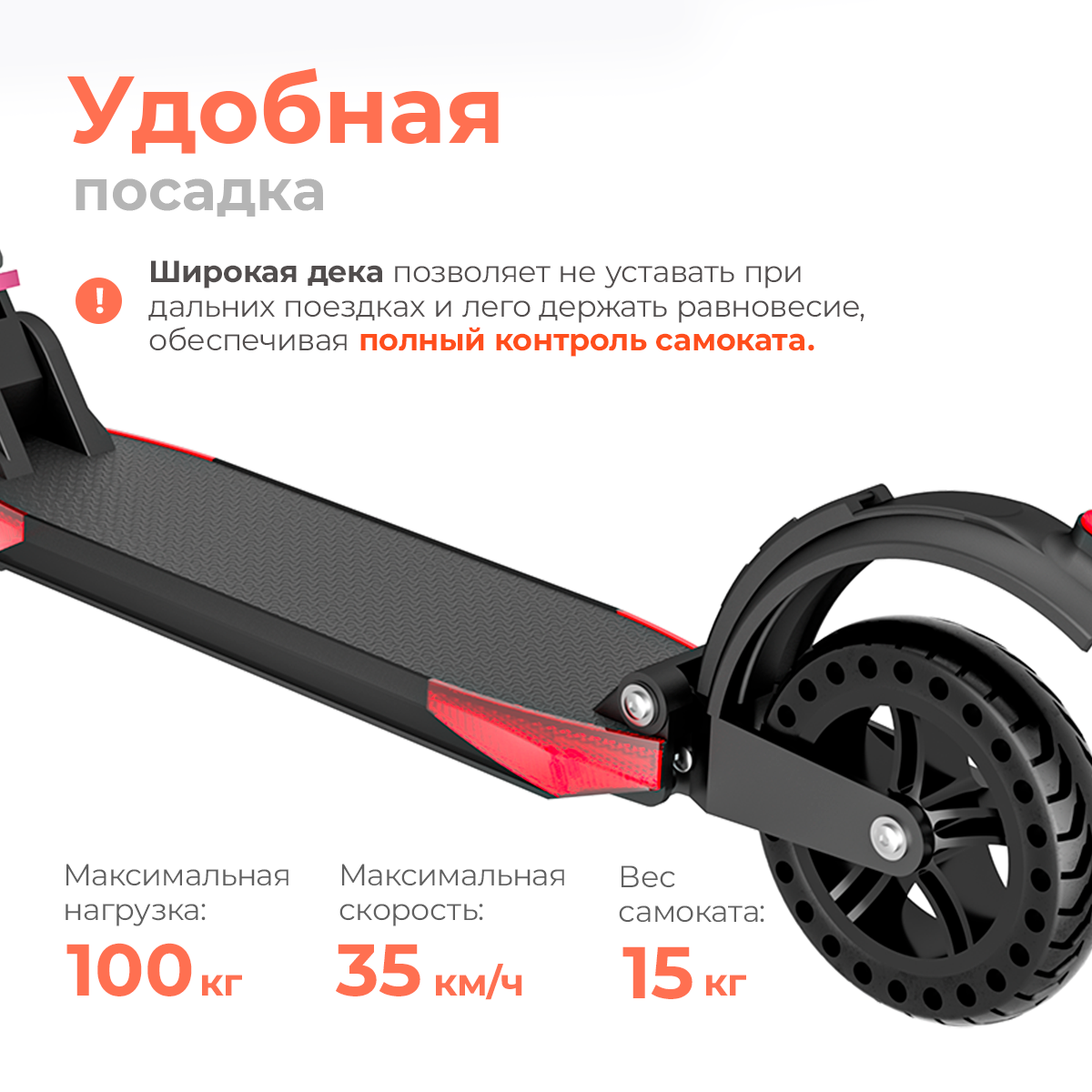 | Плюсы: | Плюсы: цена качество, дека широкая удобная, заряжается 4 часа, вес 12 кг действительно комфортный для квартиры на 5 этаже |
