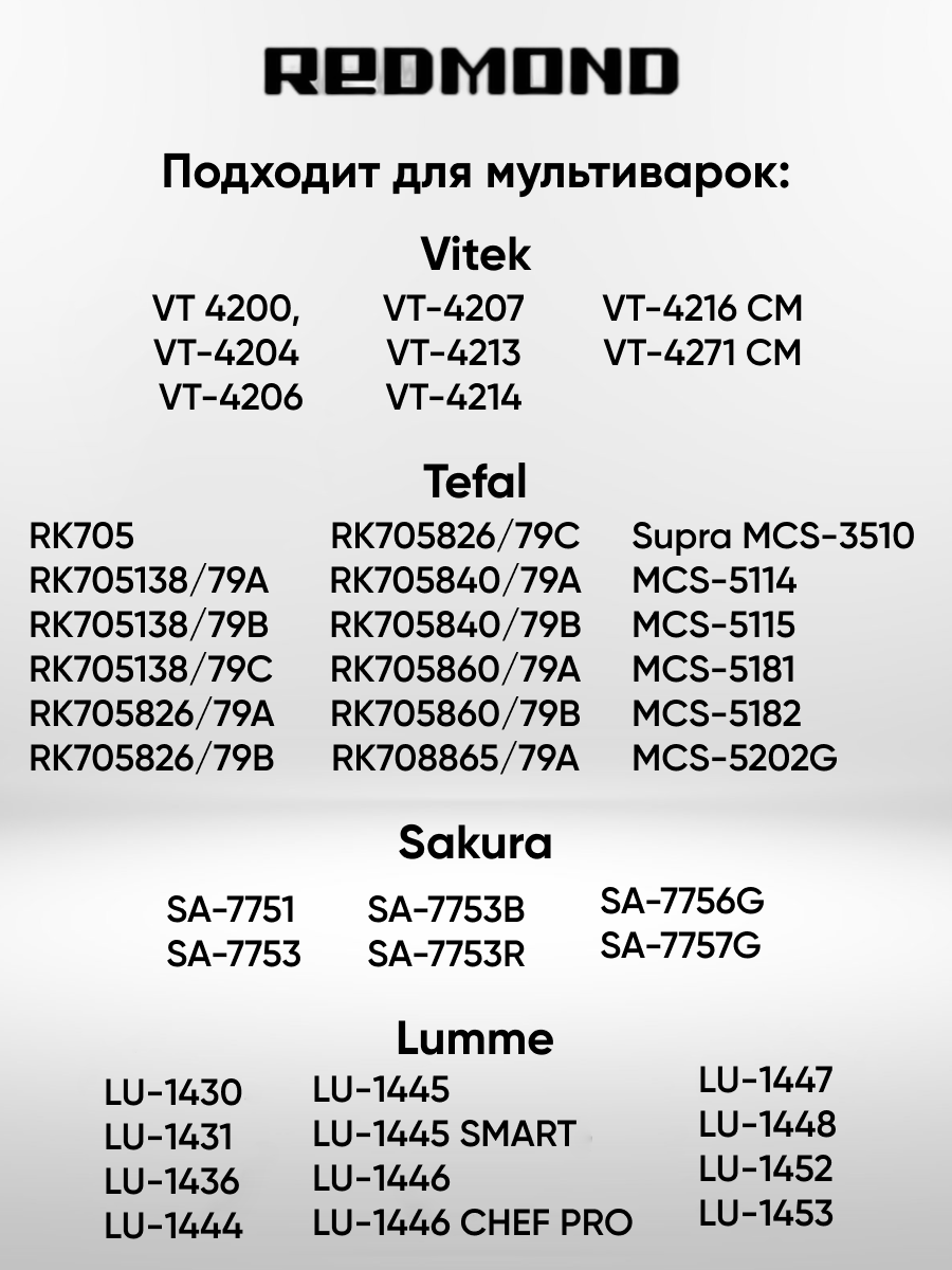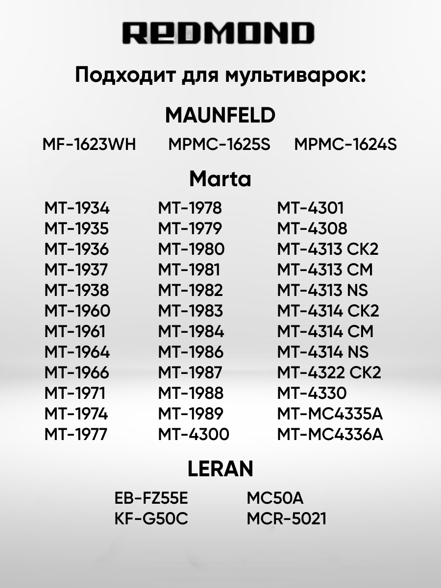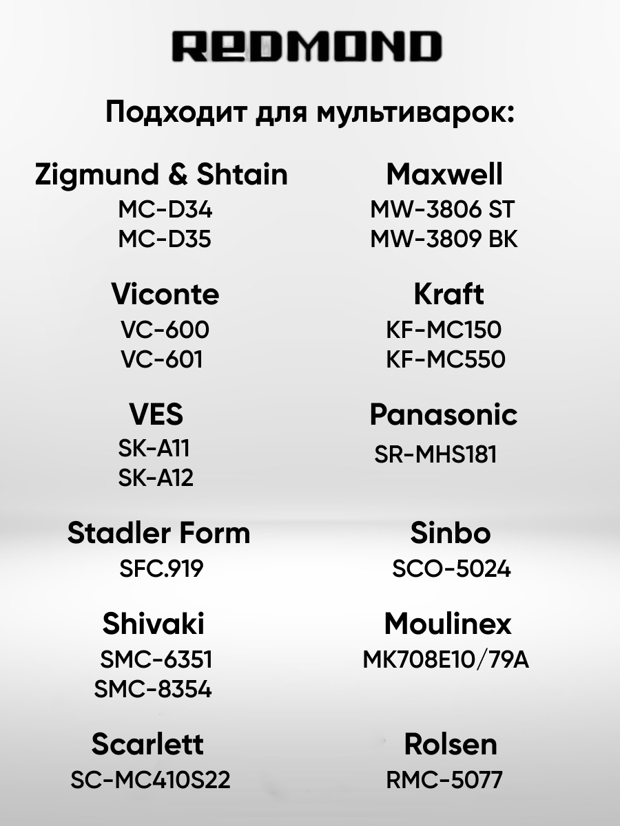 | Минусы: | Не подходит к Мультиварка Redmond RMC-PM504 |