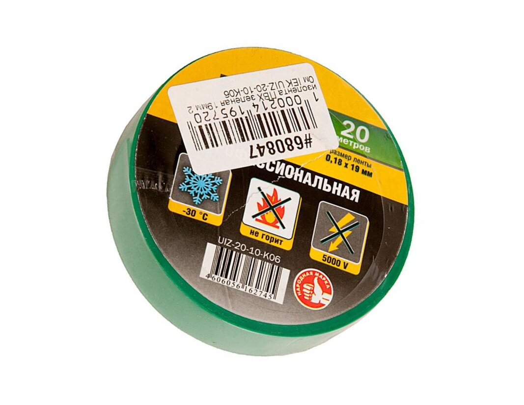 СохранитьИзолента ПВХ зеленая 19мм 20м / IEK; арт. UIZ-20-10-K06; оригинал интересное: