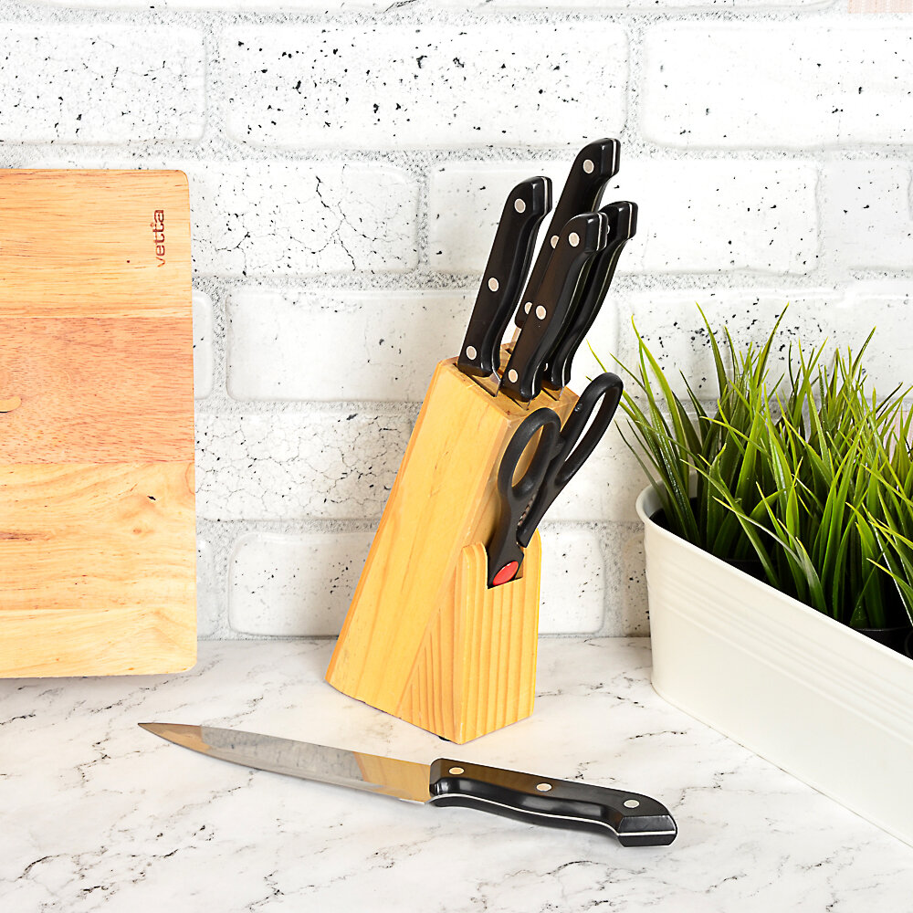 VETTA 803-103, Набор ножей в деревянной подставке ( 4 ножа, ножницы)