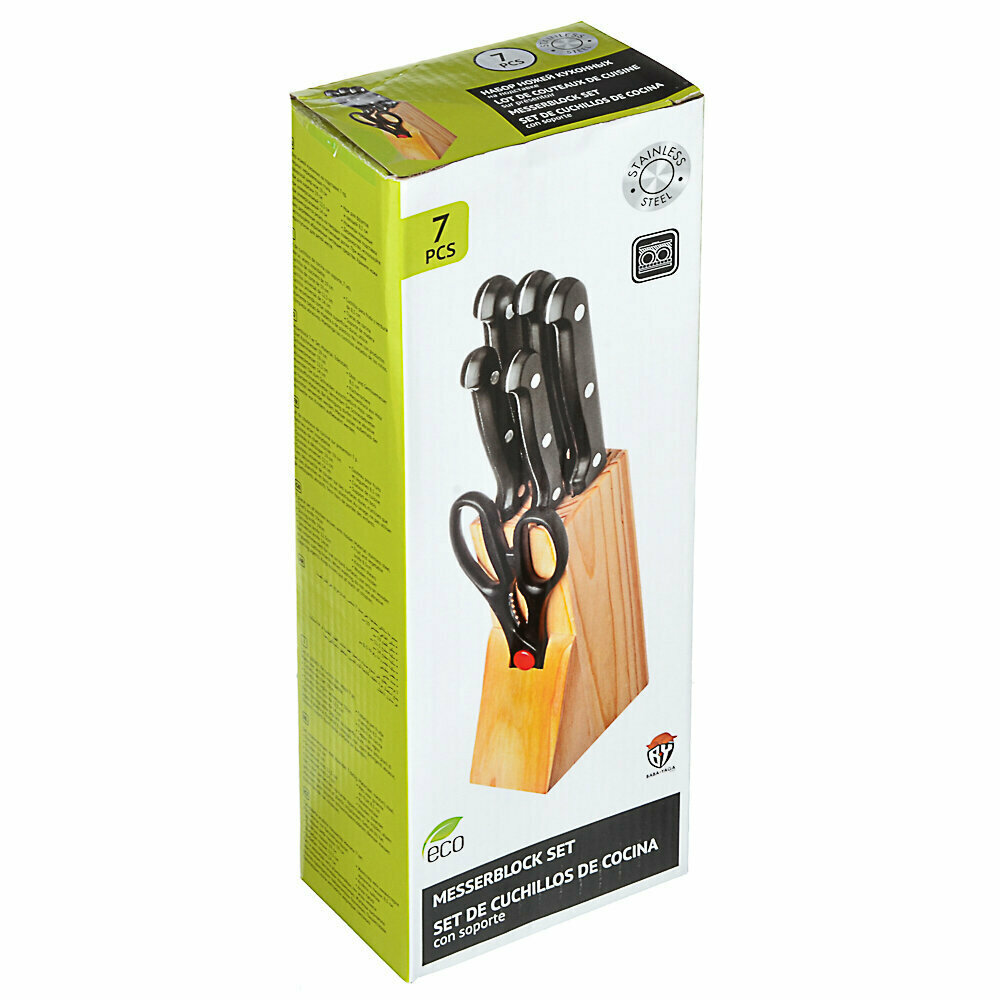 Набор ножей 6 пр. в дер.подставке: ножи кух. 7,5см, 11,5см, 12см, 14см, ножницы