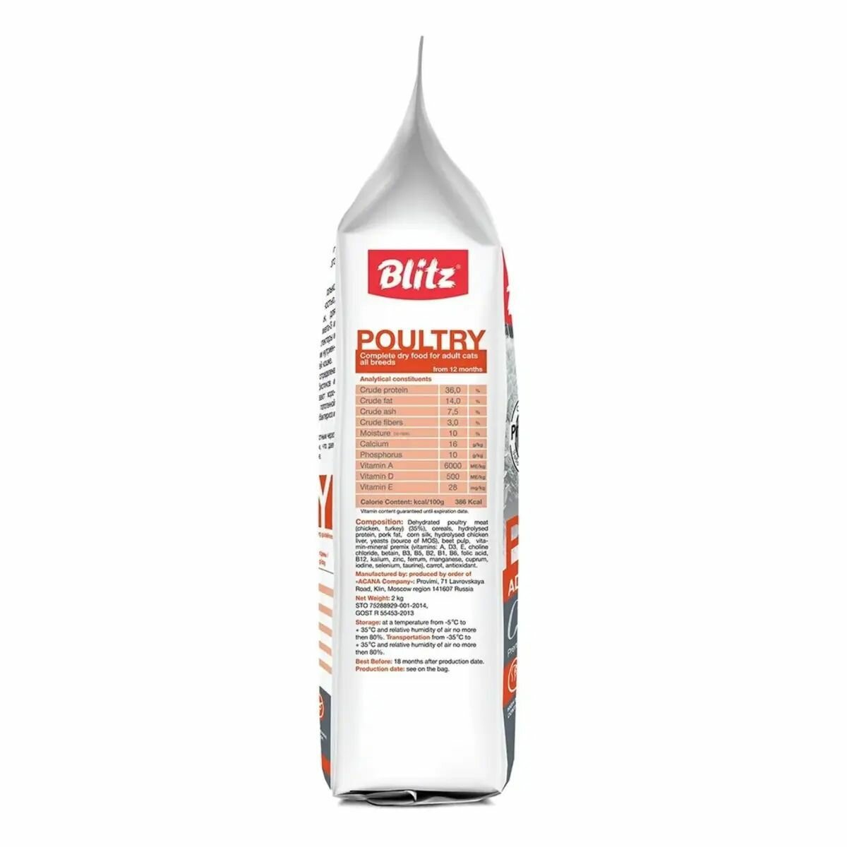 Корм сухой Blitz (pet) Blitz для взрослых кошек с Домашней Птицей 2кг