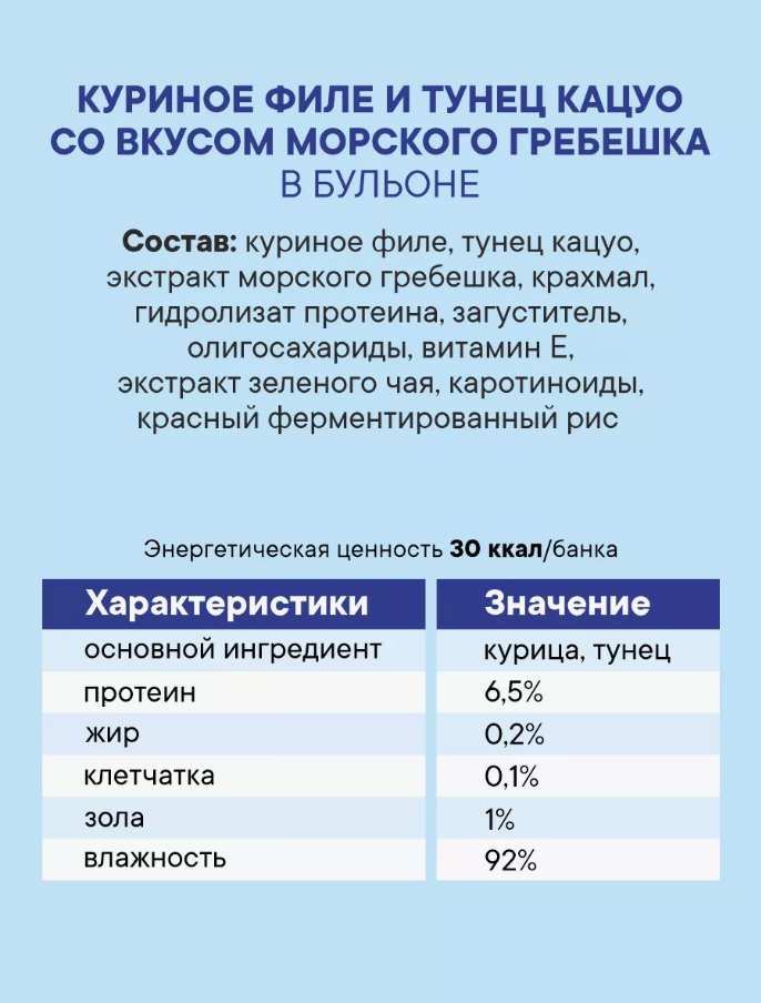 Корм консервированный для кошек Inaba полнорационный Japan Premium Pet Гребешок с мраморной вырезкой японского тунца-бонито и парным филе курицы, 6 шт х 80 гр