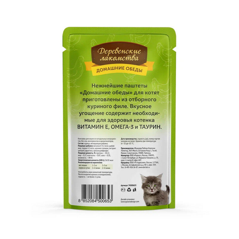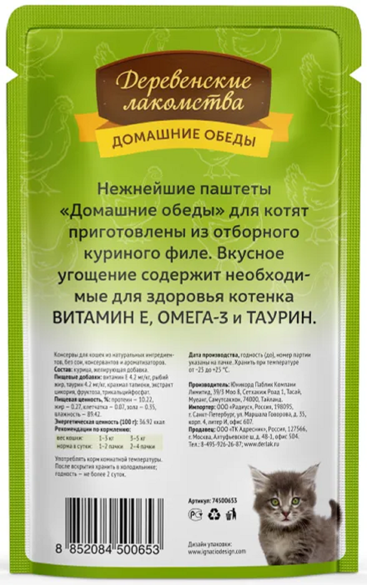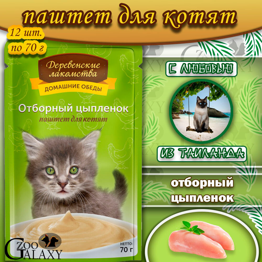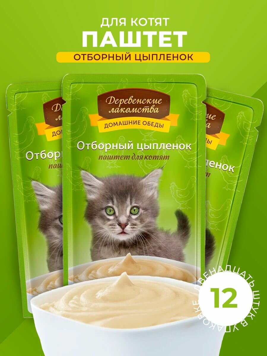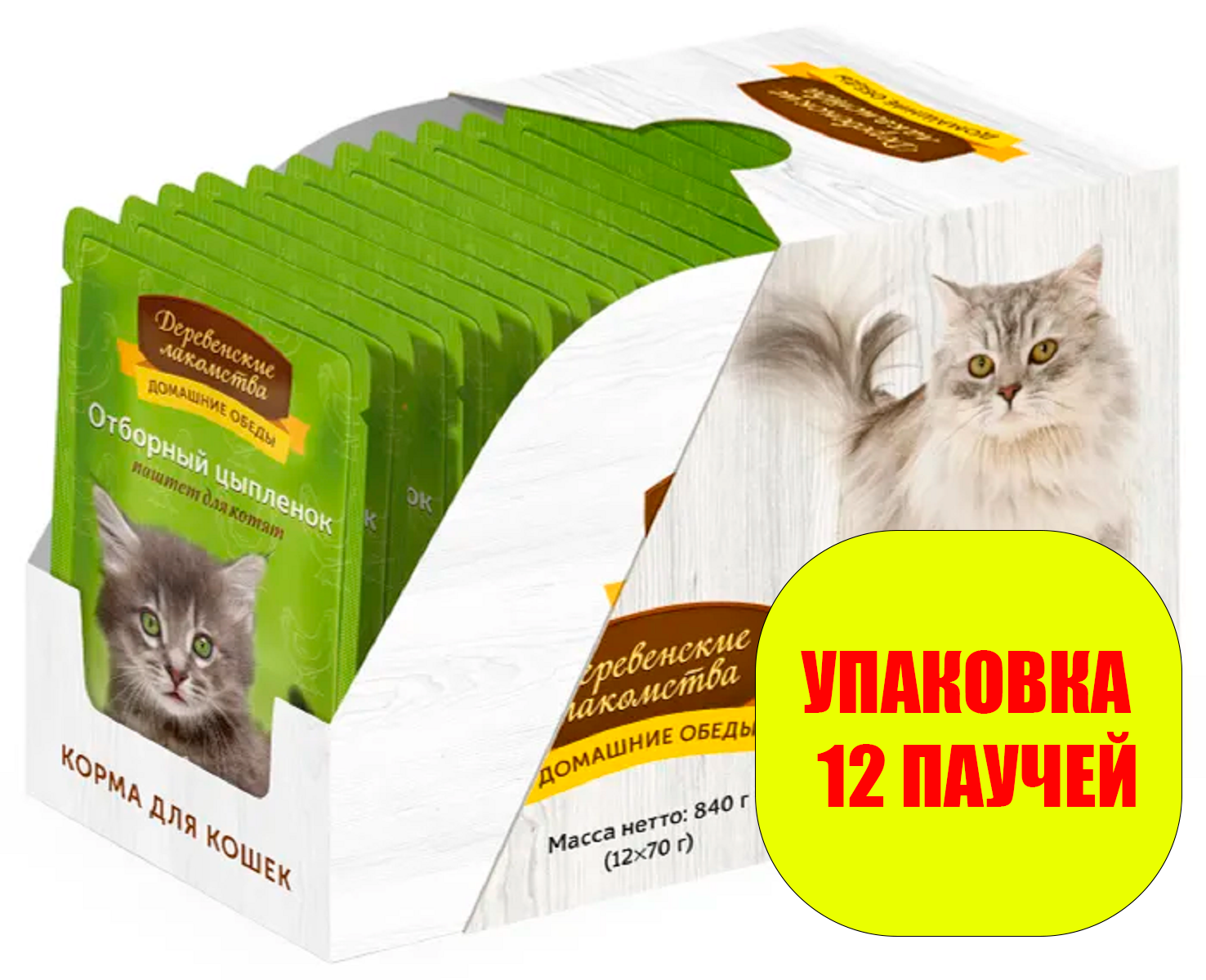 Купить Деревенские лакомства пауч для котят (паштет) Цыпленок, 70 г. упаковка 12 шт