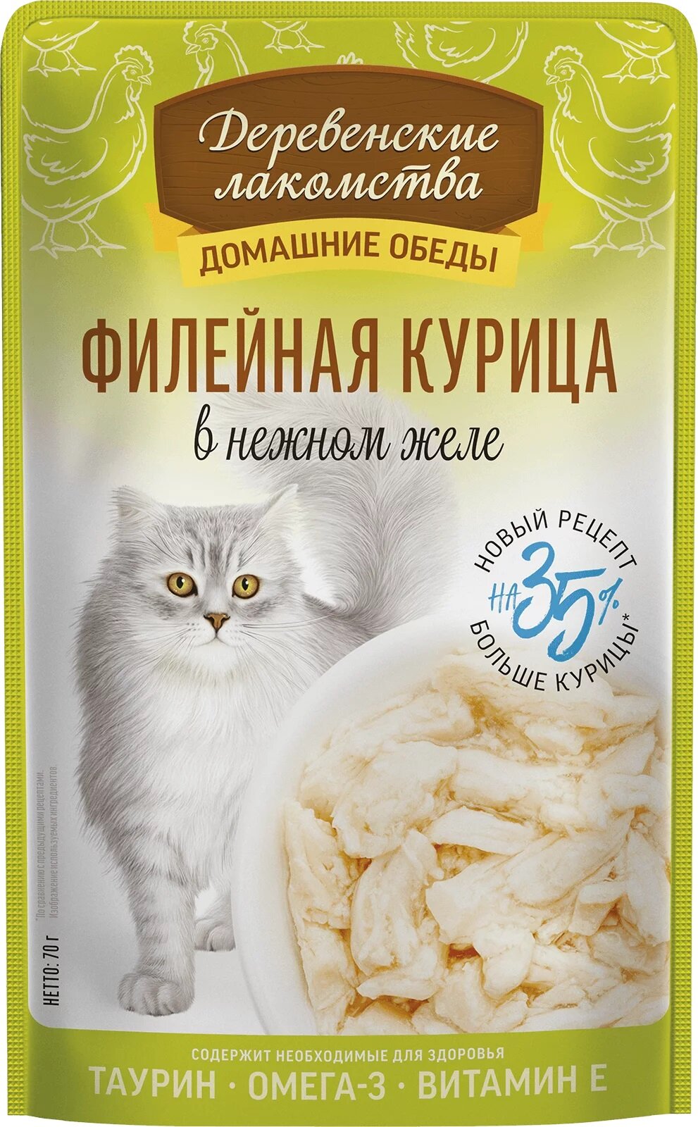 Деревенские лакомства влажный корм пауч д/кошек Курица с креветкой в нежном желе 70г.×12шт.
