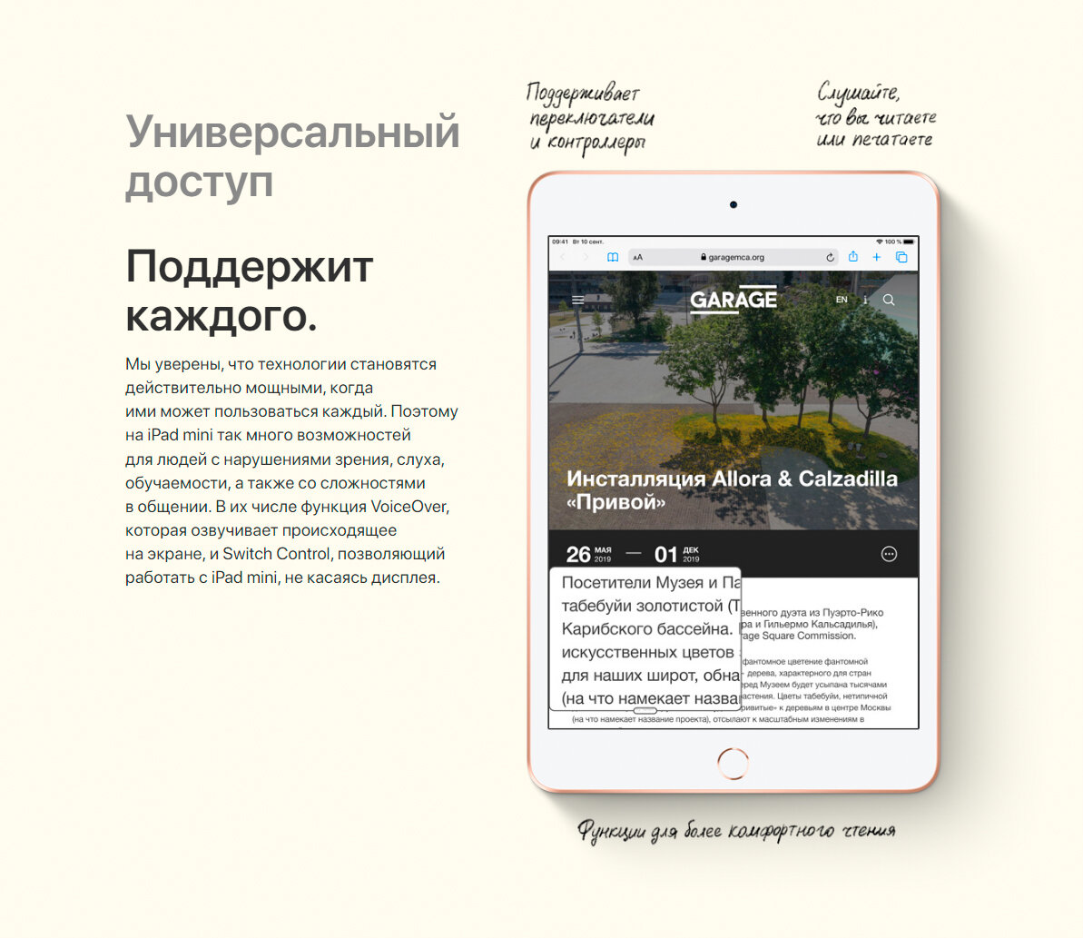 | Особенности | сопроцессор Apple M12; поддержка Apple Pencil и Bluetooth-клавиатуры; дополнительные возможности: Apple Pay / Siri |
