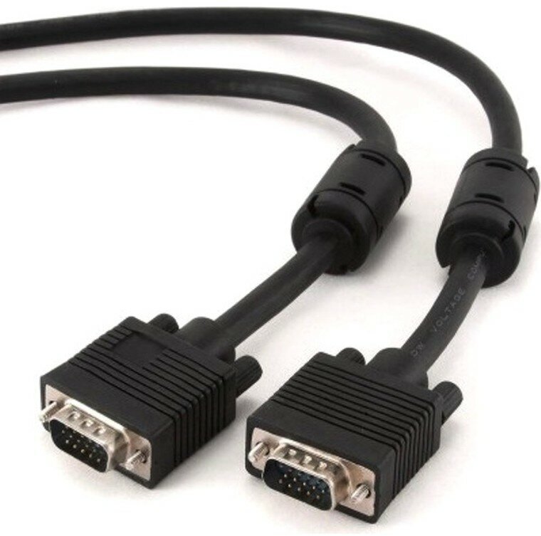 Кабель VGA Premium Cablexpert, 1.8 метра, 15M/15M, черный, двойное экранирование, ферритовые кольца
