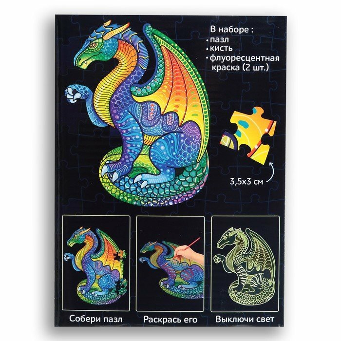 Купить Светящийся пазл «Дракон», флуоресцентные краски, 68 деталей (комплект из 3 шт)