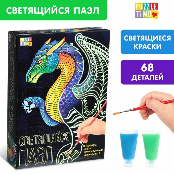 Светящийся пазл «Дракон», флуоресцентные краски, 68 деталей (комплект из 3 шт) интересное: