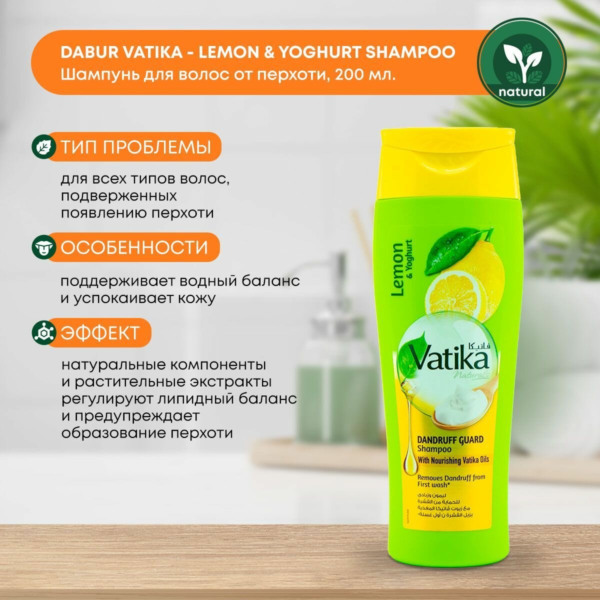 Dabur Vatika Шампунь от перхоти с лимоном и йогуртом /Lemon & Yoghurt/ Дабур Ватика (Dandruff guard) 400 мл