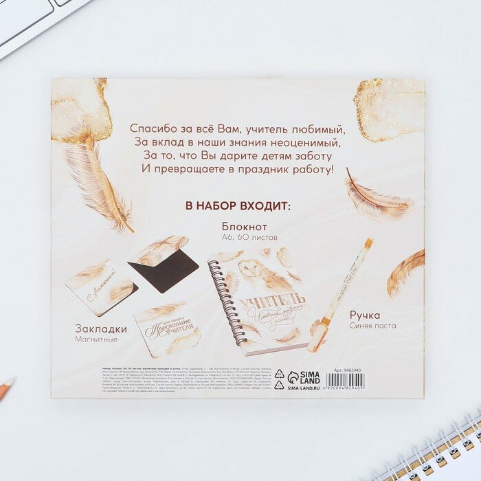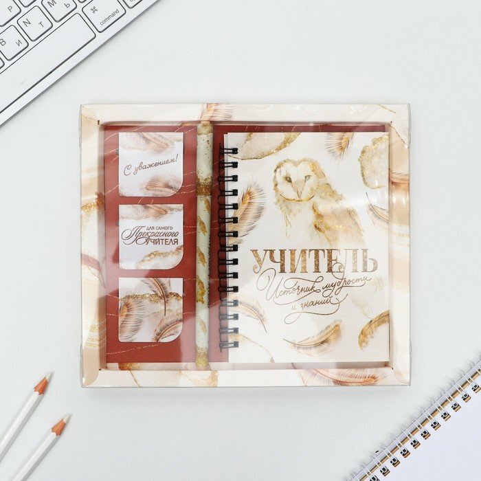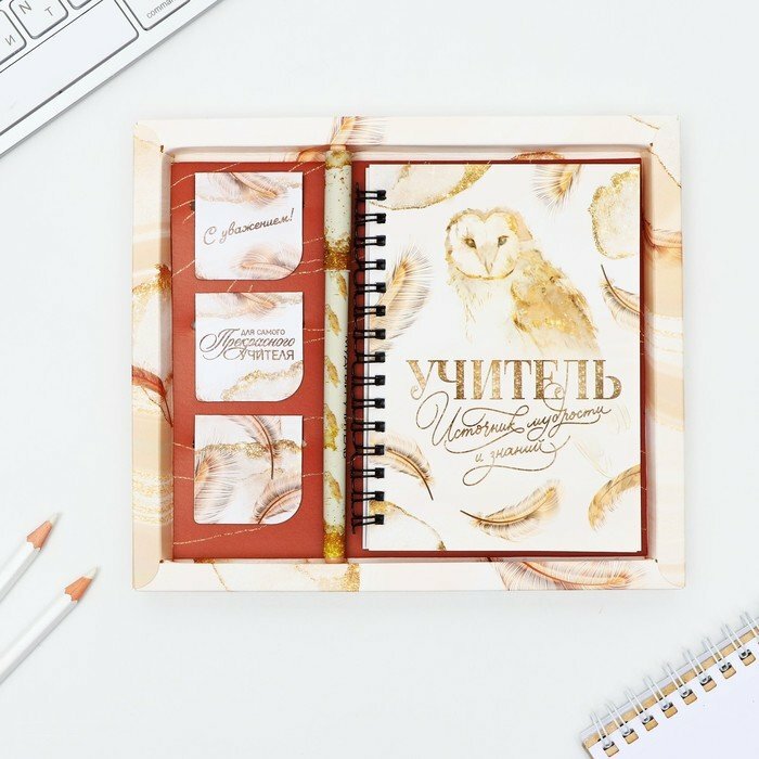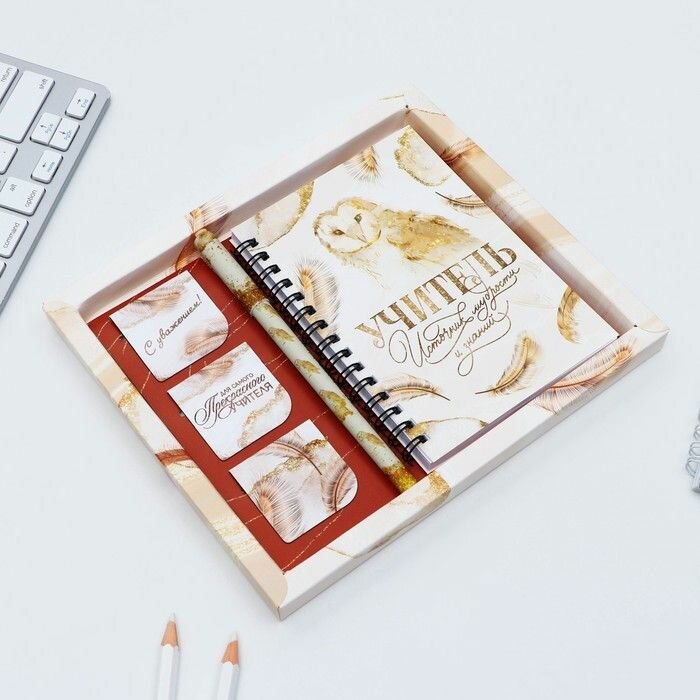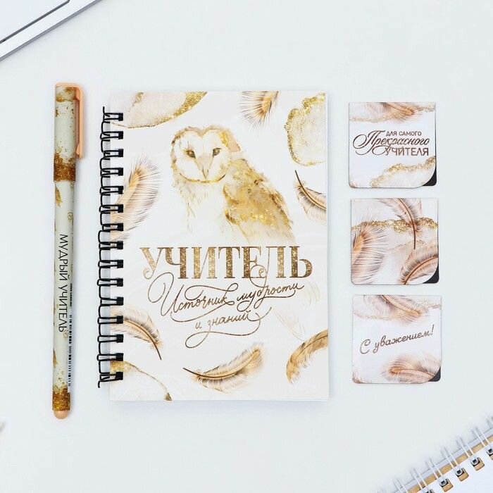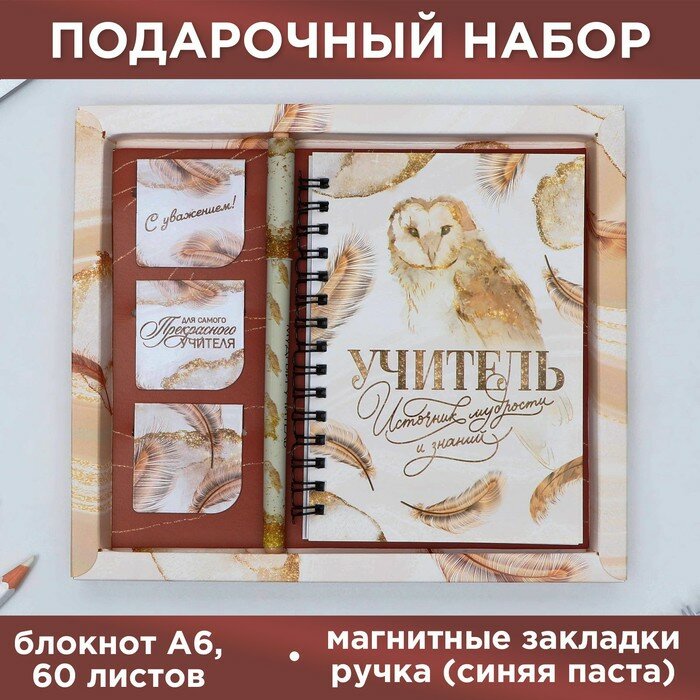 Купить Подарочный набор «Учителю: Учитель источник мудрости и знаний»: блокнот А6, 60 л. магнитные закладки и ручка (комплект из 4 шт)