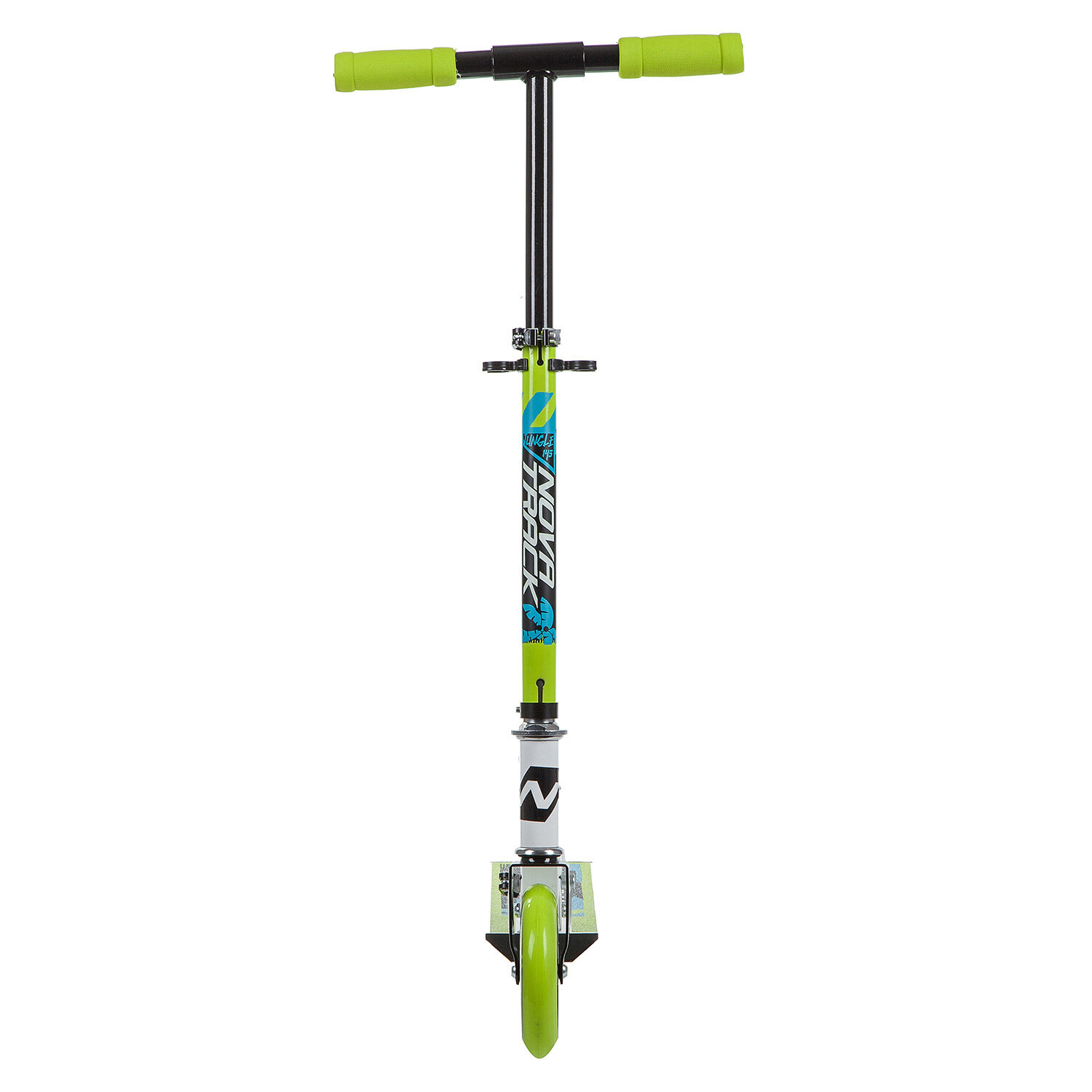 Купить Самокат для детей NOVATRACK JUNGLE сталь, складной, ватер стикер, колеса дизайн.145*125ммPU, бело-зеленый