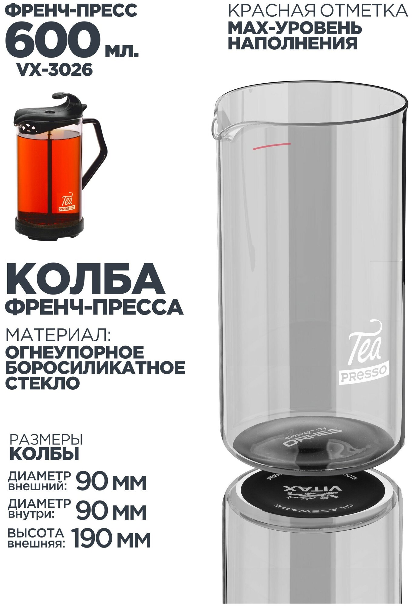 Купить Френч-пресс Vitax VX-3026 Tea presso, 600 мл