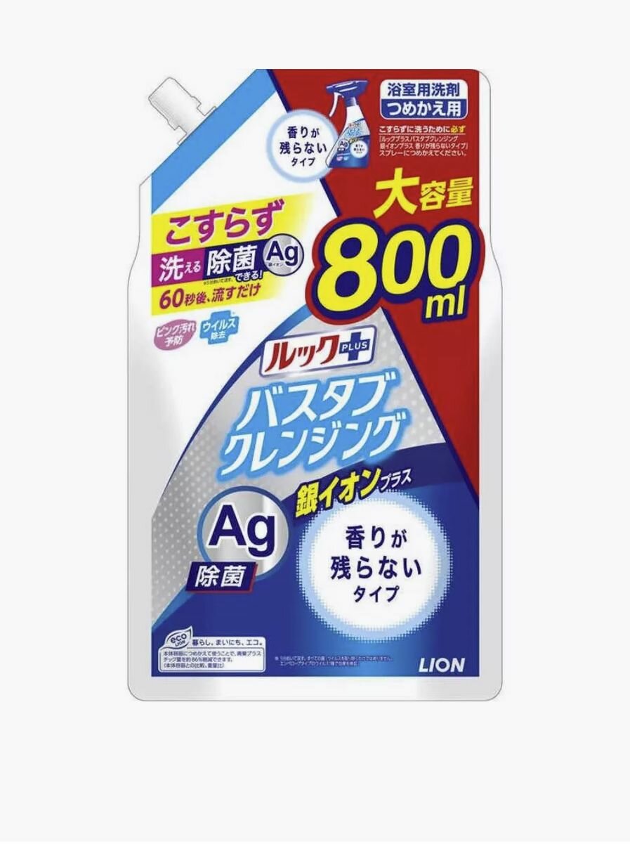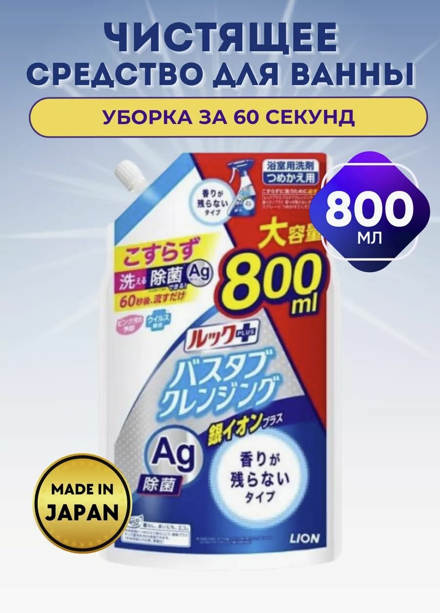 СохранитьЧистящее средство для ванной комнаты быстрого действия LION Look Silver Ion Plus, с ионами серебра, без аромата, сменная упаковка 800мл. интересное: