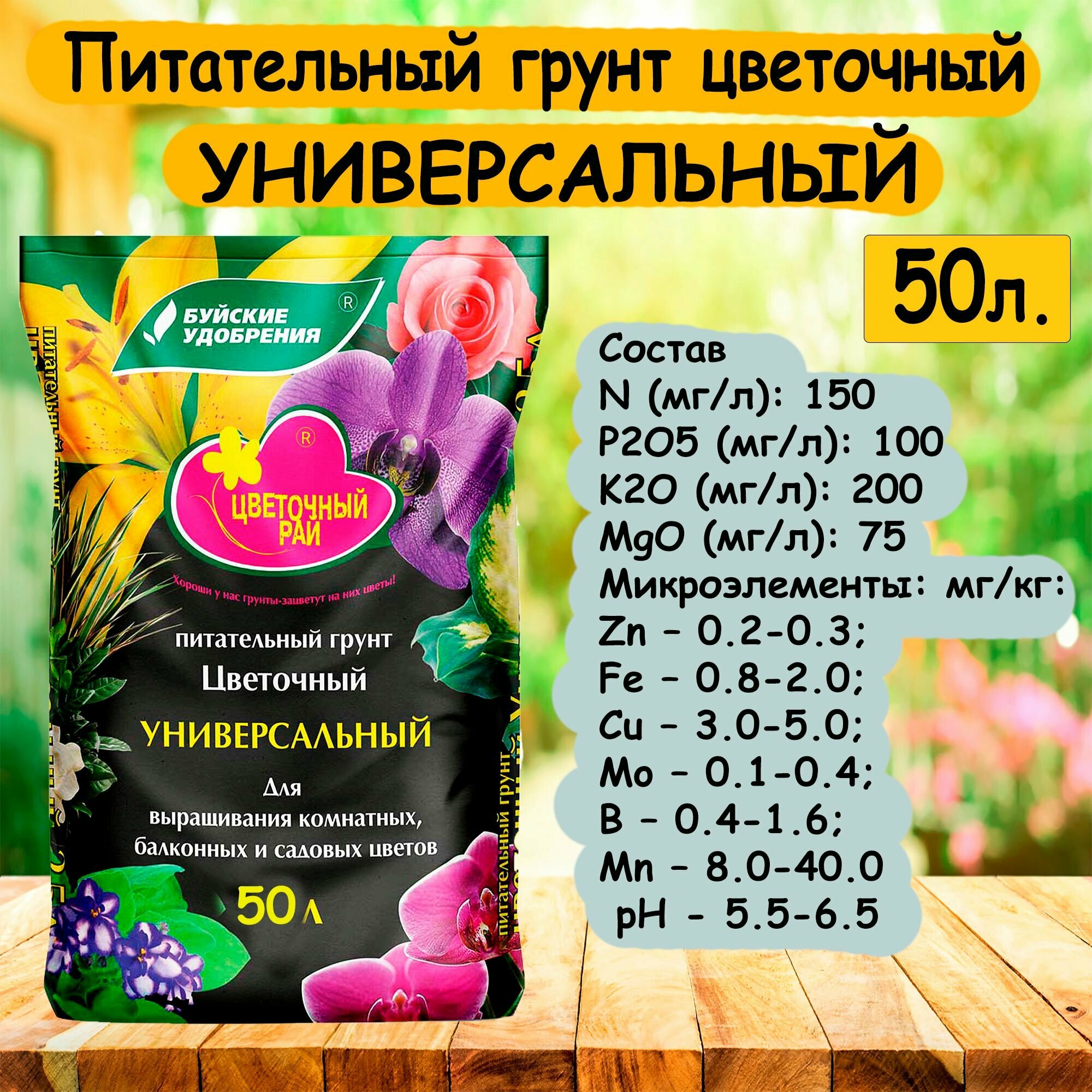 Купить Грунт питательный Буйские удобрения "Цветочный Рай" Универсальный, 50 л