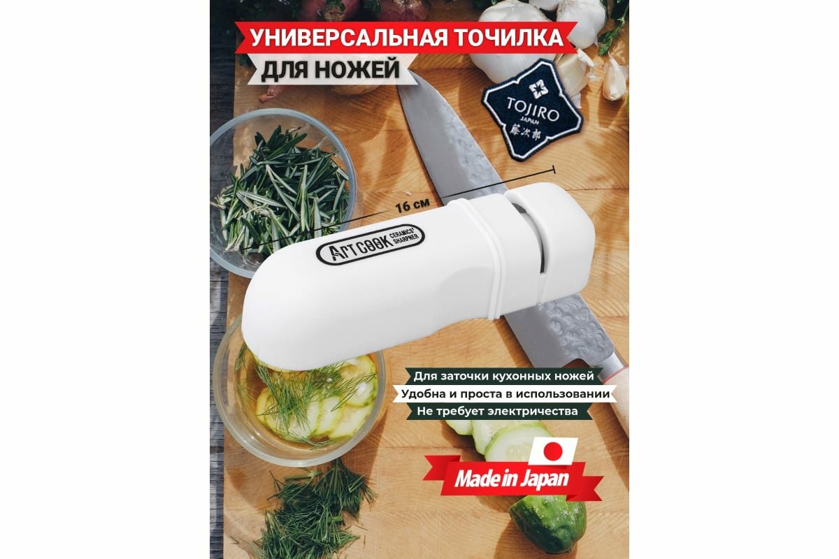 Точилка для ножей ручная универсальная TOJIRO (FK-437), размер 110х35х25 мм, материал пластик, белый Япония интересное: