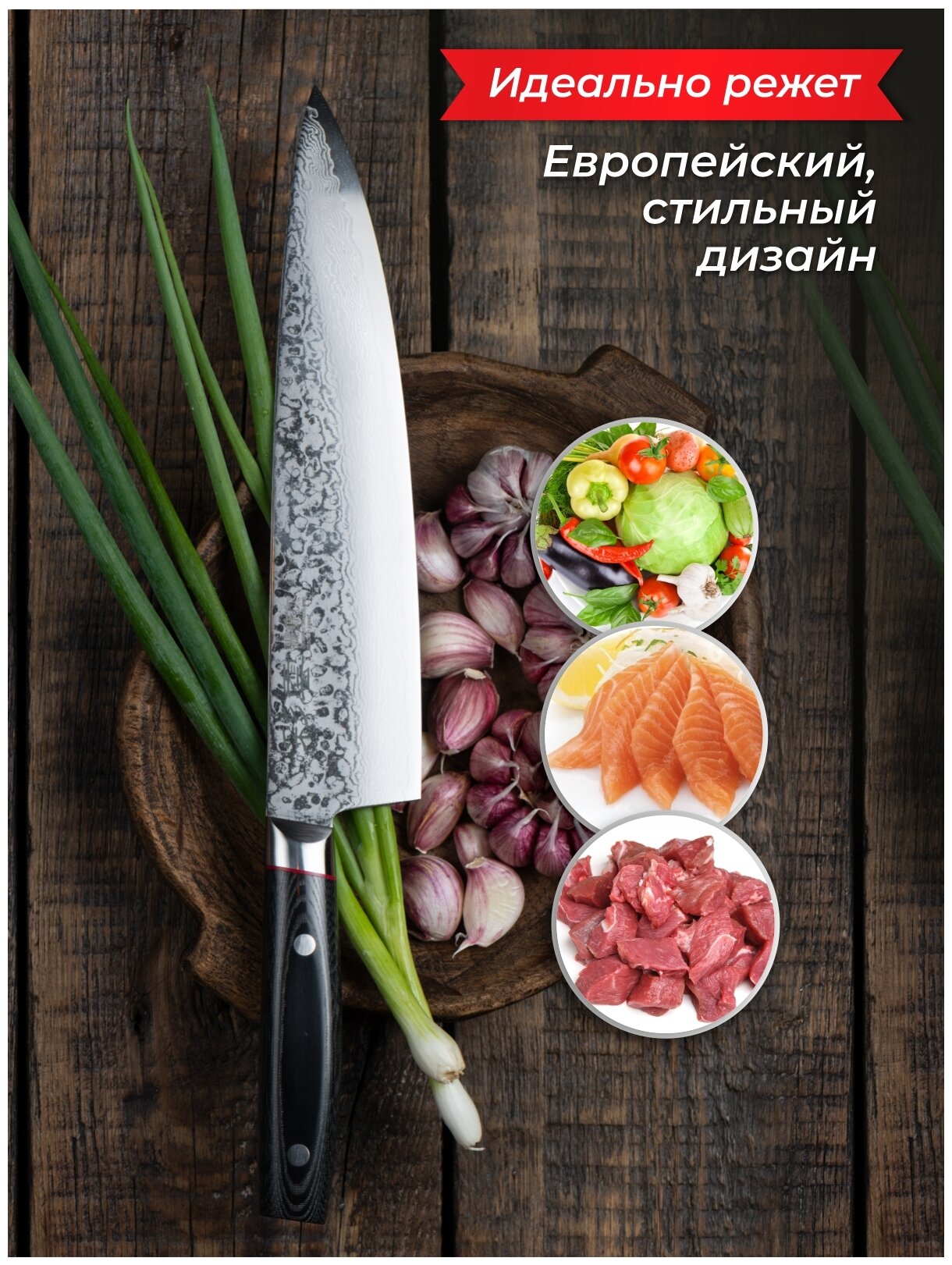 Нож кухонный поварской Шеф, 23 см 9006 Saiun Damascus интересное: