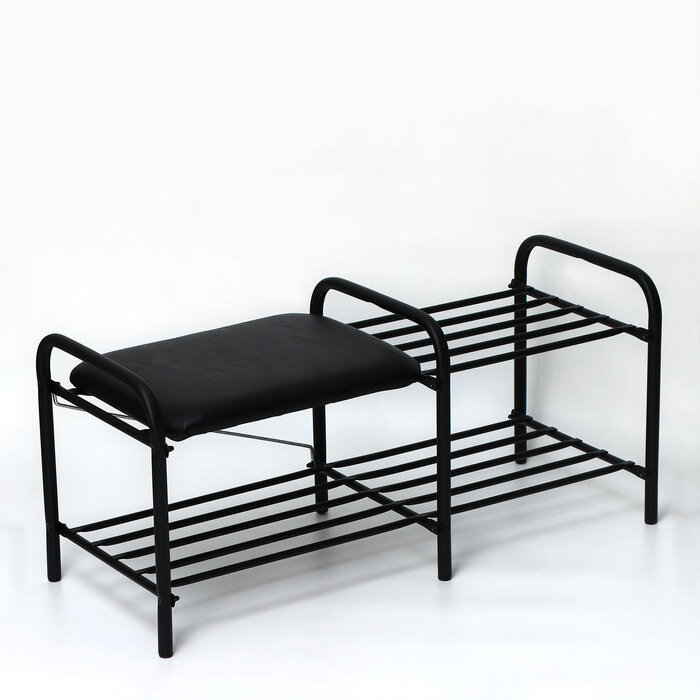 Купить Полка для обуви металл, 2 секции, 79х33х36 см, с сиденьем, черная, Nika, ЭТЛ1-1/Ч
