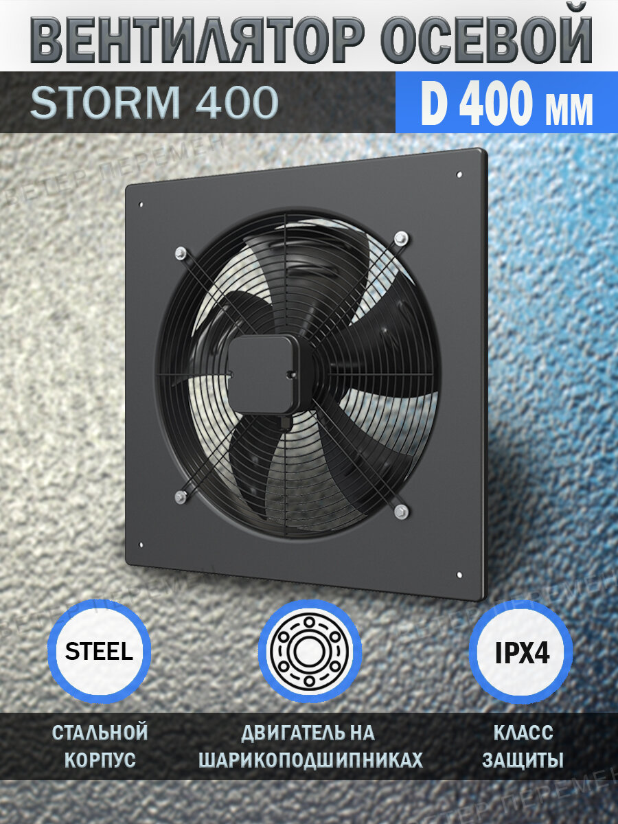 Вентилятор осевой вытяжной Era PRO STORM 400, 4 полюса, D 400, 235 Вт