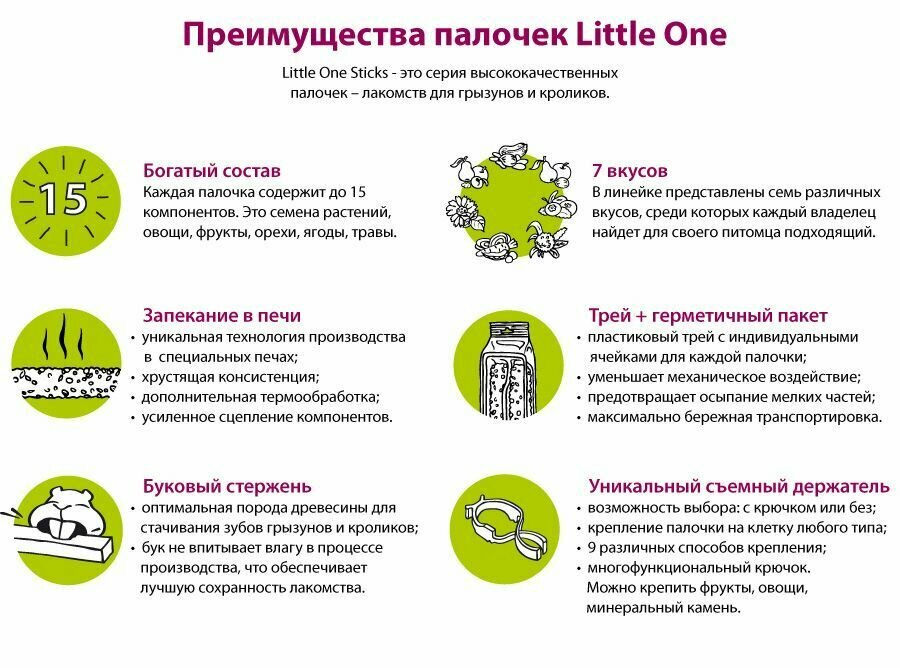 Ниже Вы можете прочитать отзывы на Little One Палочки для морских свинок, кроликов и шиншилл с фруктами, 2х60 г, ознакомится с подробными характеристиками, посмотреть интересные обзоры и фотографии на Little One Палочки для морских свинок, кроликов и шиншилл с фруктами, 2х60 г.