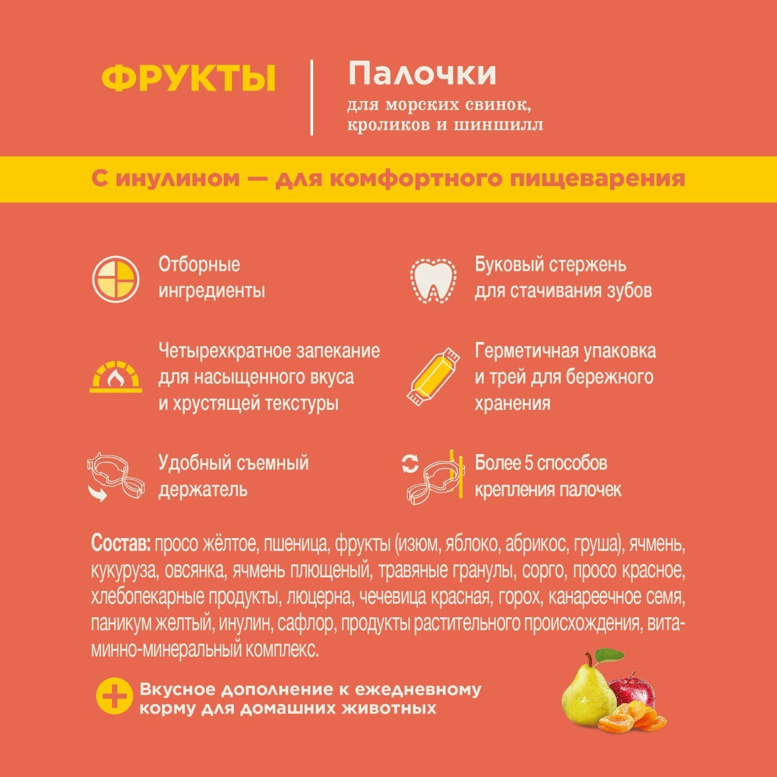Купить Little One Палочки для морских свинок, кроликов и шиншилл с фруктами, 2х60 г
