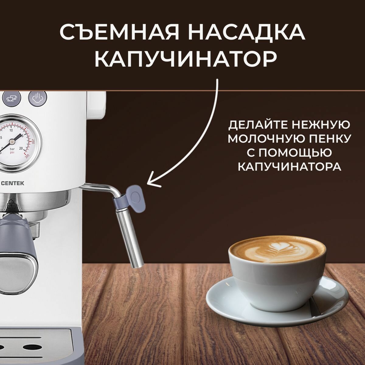 Кофеварка Centek CT-1164 <3в1> эспрессо 15 Бар +капучинатор +латте, 1500 мл, 1050Вт, сенсор, LED
