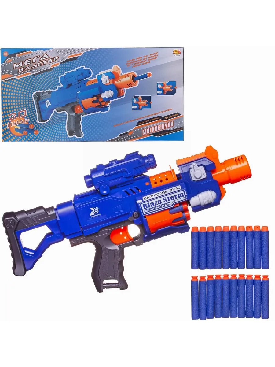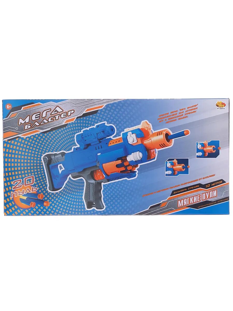 Автомат абтойс мегабластер синий с 20 мягкими пулями синий в/к pt-00919
