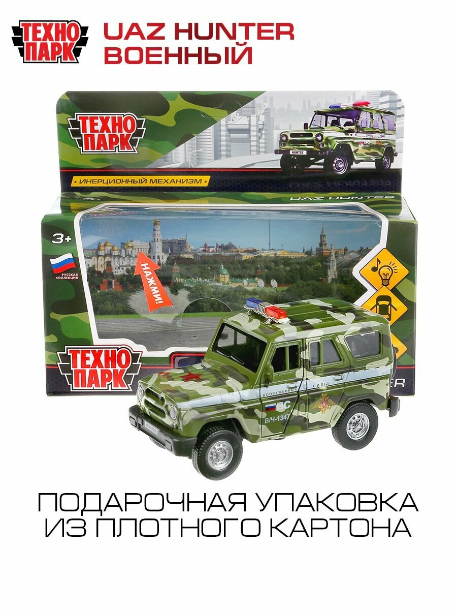 Машинка игрушка детская для мальчика детская УАЗ Хантер Военный Технопарк инерционная металическая со свуком и светом 12 см