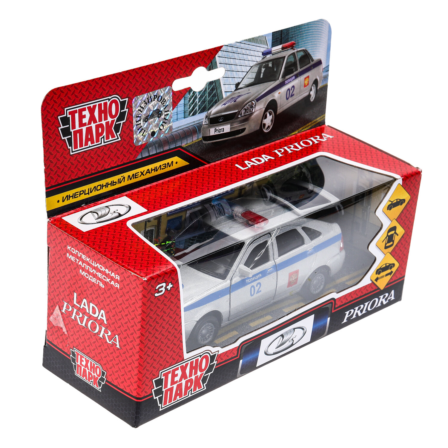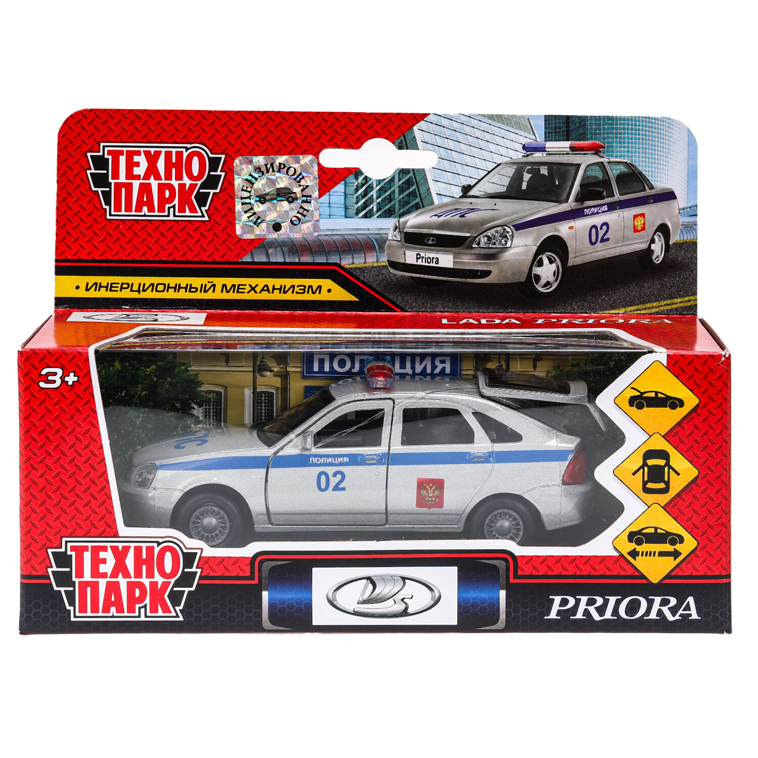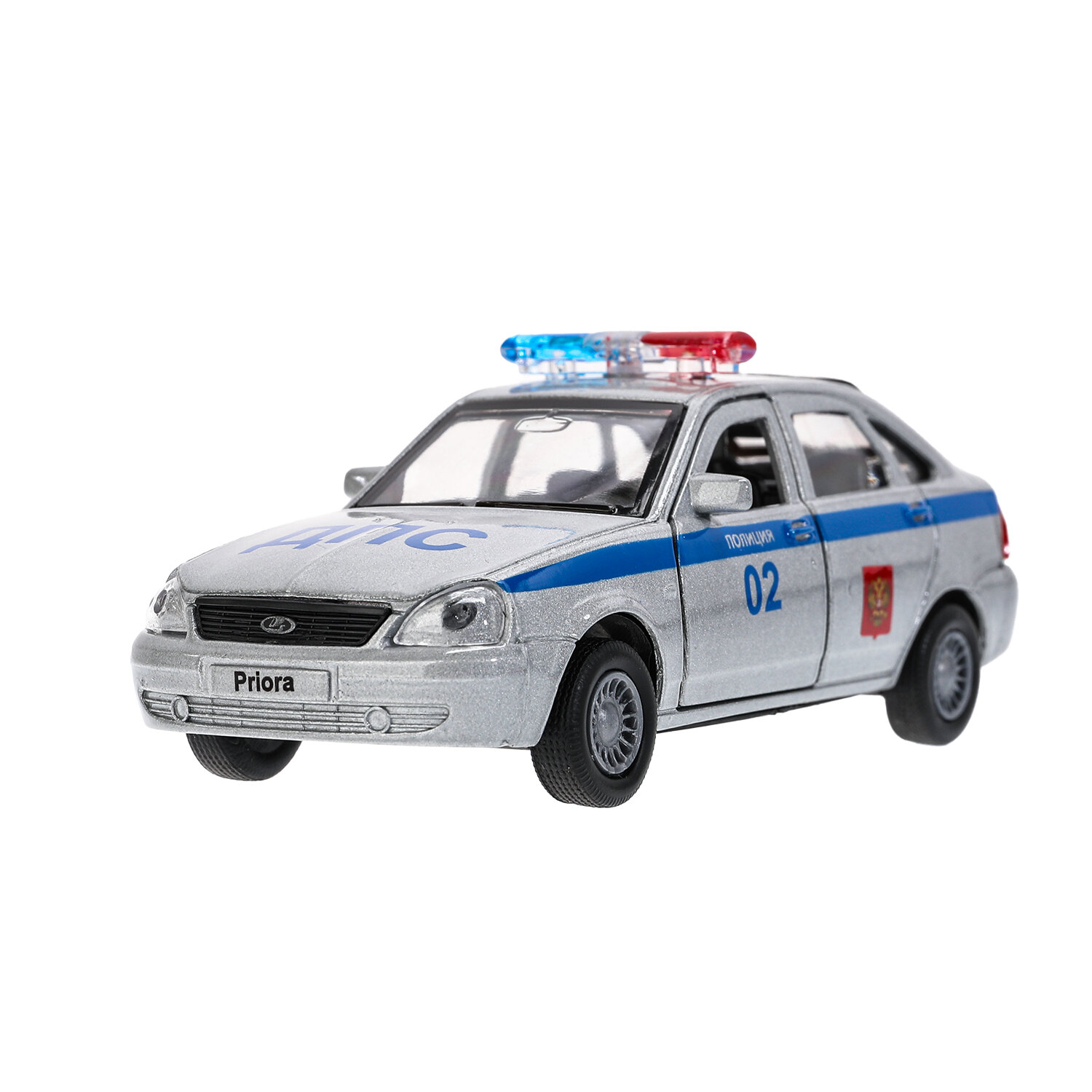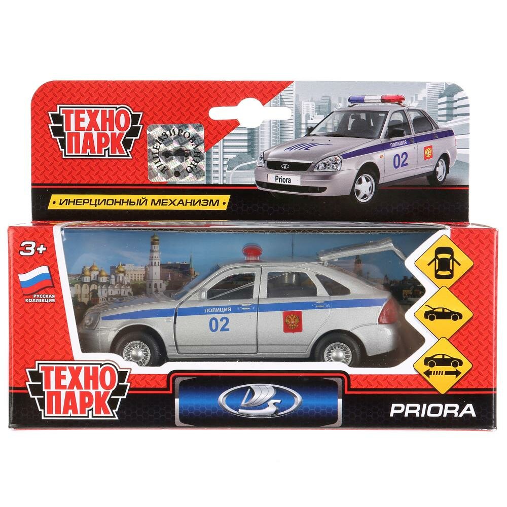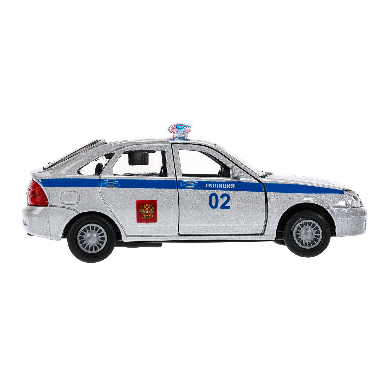 Купить Машинка детская Полиция Лада Приора ВАЗ 2172 Хэтчбек 12 см, Технопарк, серебристая, открываются двери и багажник