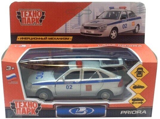 Машинка детская Полиция Лада Приора ВАЗ 2172 Хэтчбек 12 см, Технопарк, серебристая, открываются двери и багажник интересное: