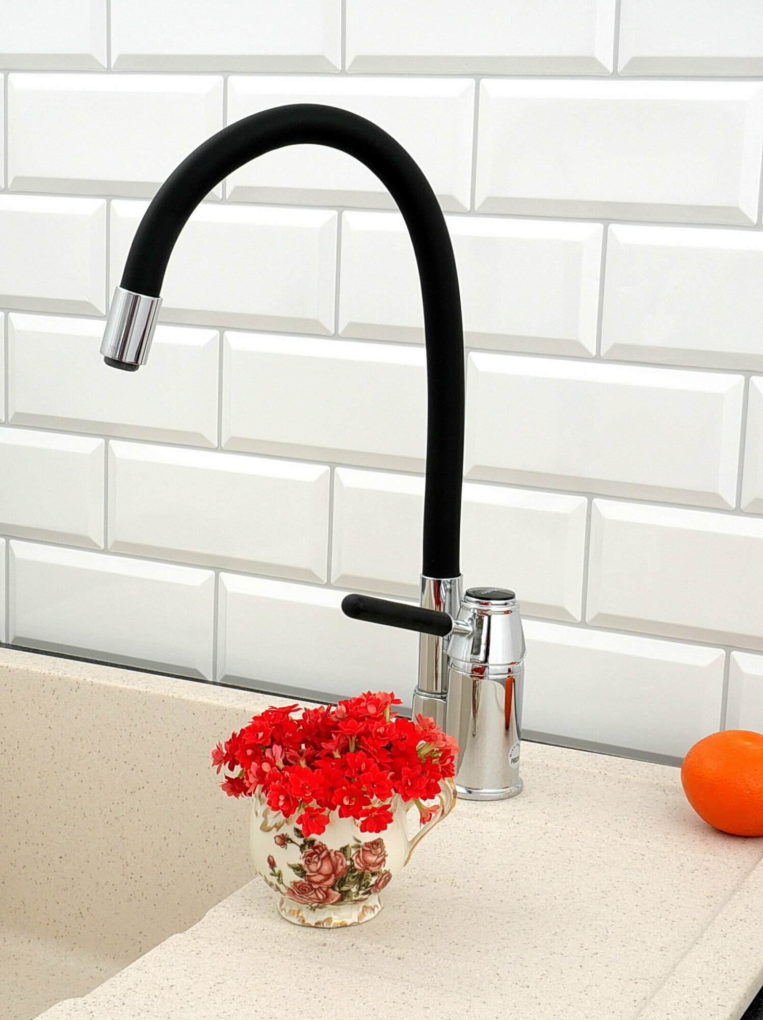 СохранитьСмеситель для кухни черный, кран на кухню Potato P58233-6 интересное: