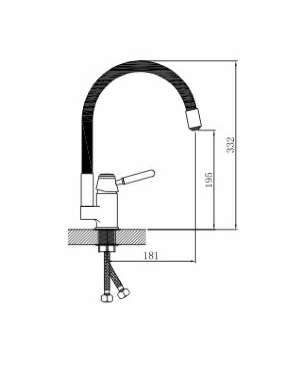 Смесит д/кухни, 1-ручк, к35, черный, выс гибкий изл, крепл гайка, Potato(Китай), P58233-6
