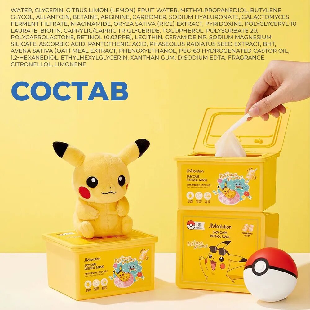 СохранитьJMsolution Набор обновляющих масок для лица с ретинолом JMsolution Easy Care Retinol Mask Pokemon Summer, Корея 30 шт интересное: