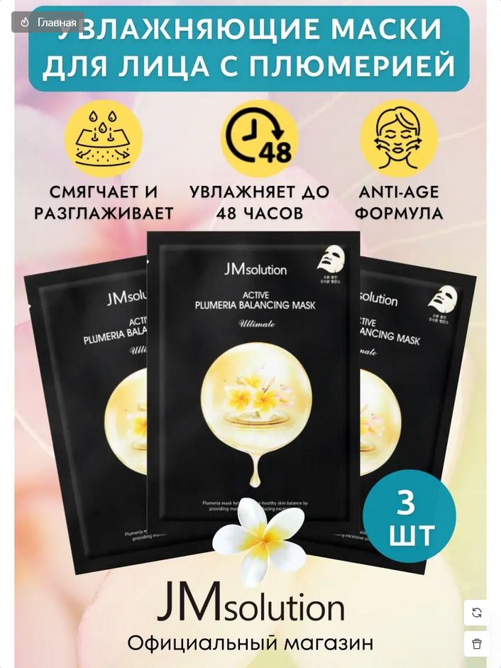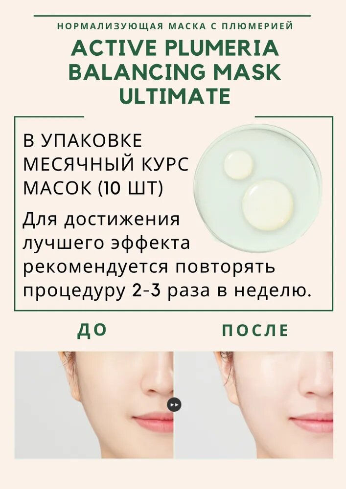 СохранитьМаски для лица увлажняющие ACTIVE PLUMERIA BALANCING MASK ULTIMATE, 3 штуки интересное: