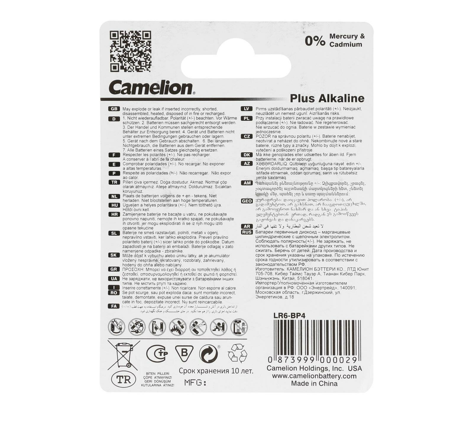 Camelion Plus Alkaline AA, 4 шт. LR6-BP4